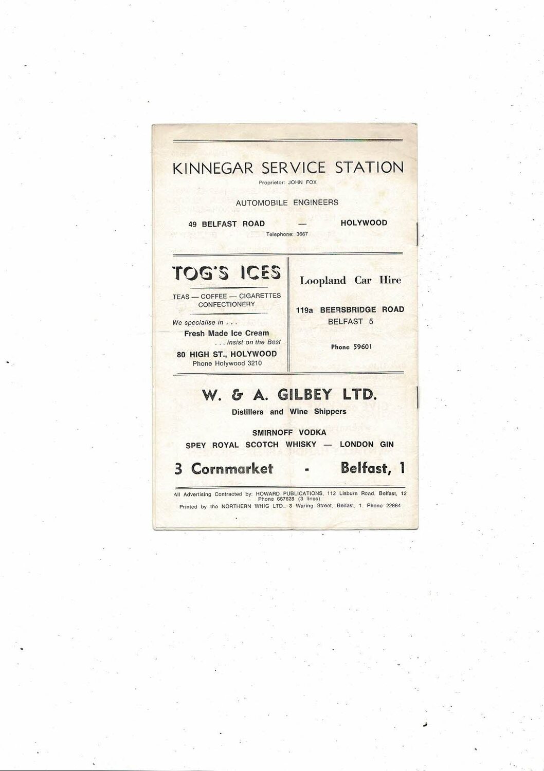 1968/69 Glentoran v Linfield Ulster Cup Football Programme 5th August