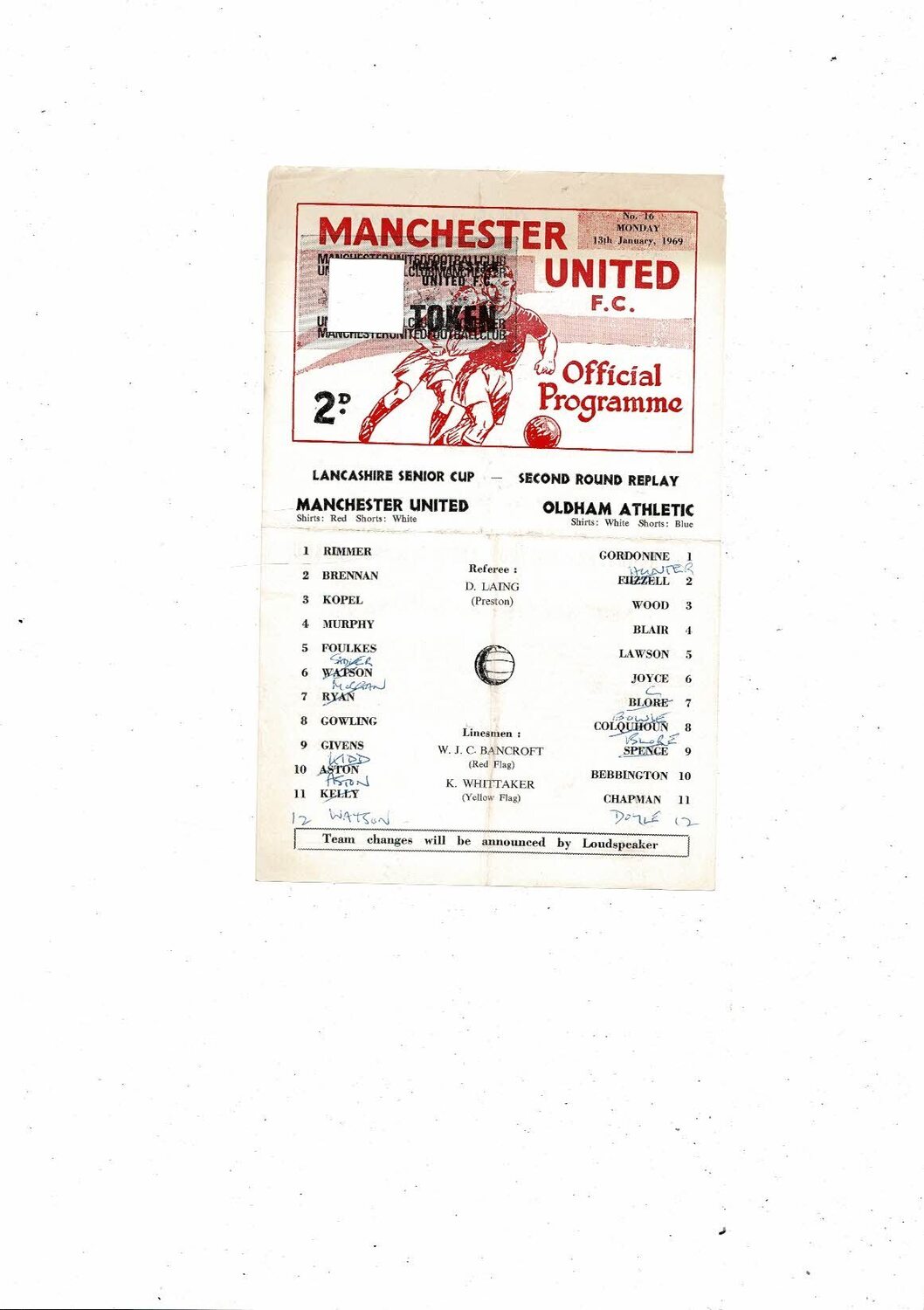 1968/69 Manchester United v Oldham Athletic Lancashire Snr Cup Replay Programme