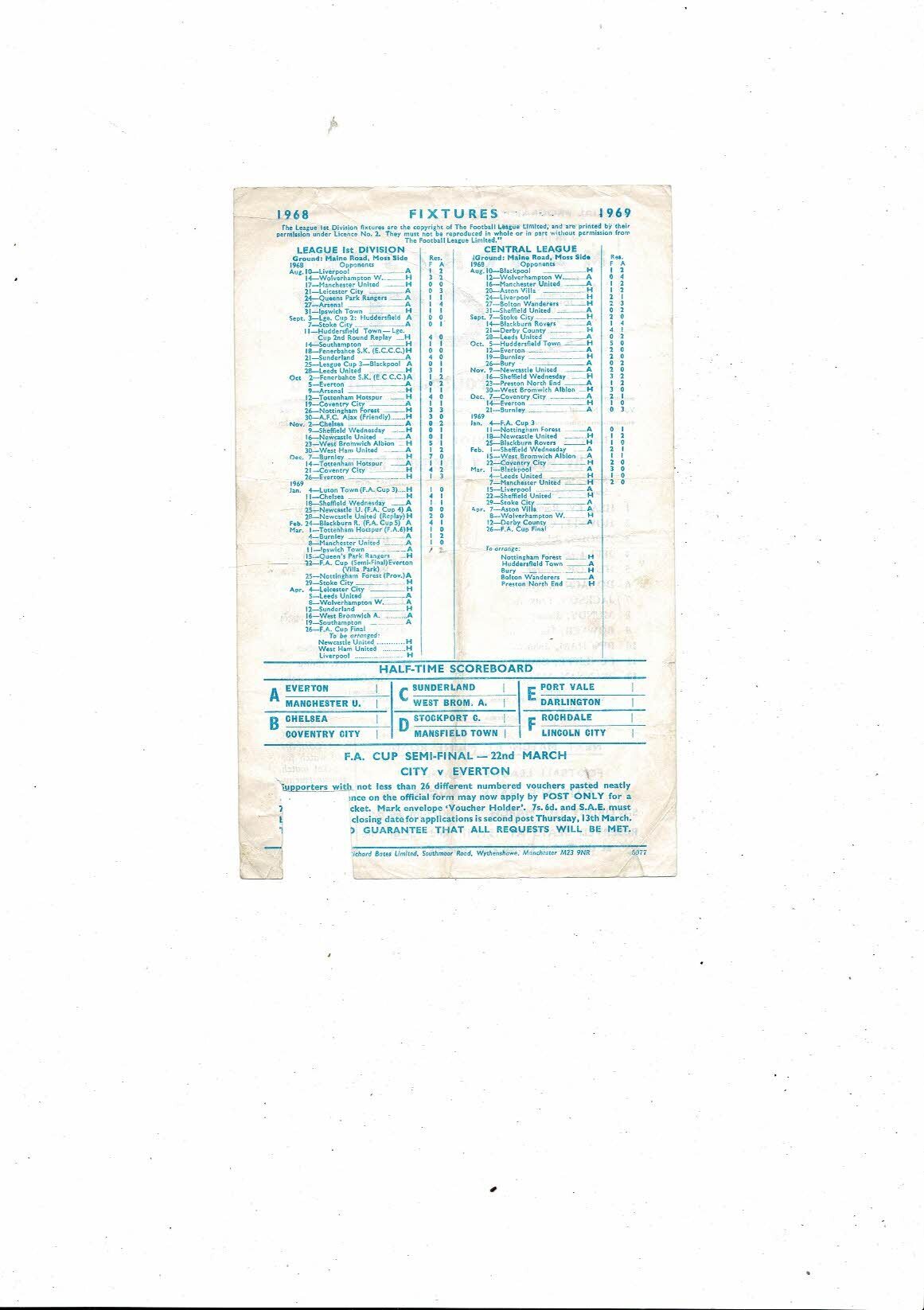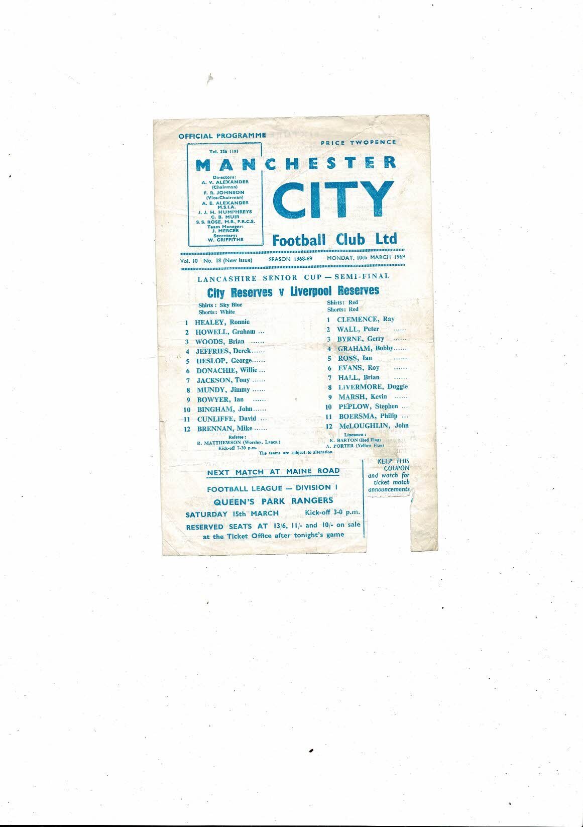 Manchester City v Liverpool Lancashire Senior Cup Semi Final Football Programme 1968/69