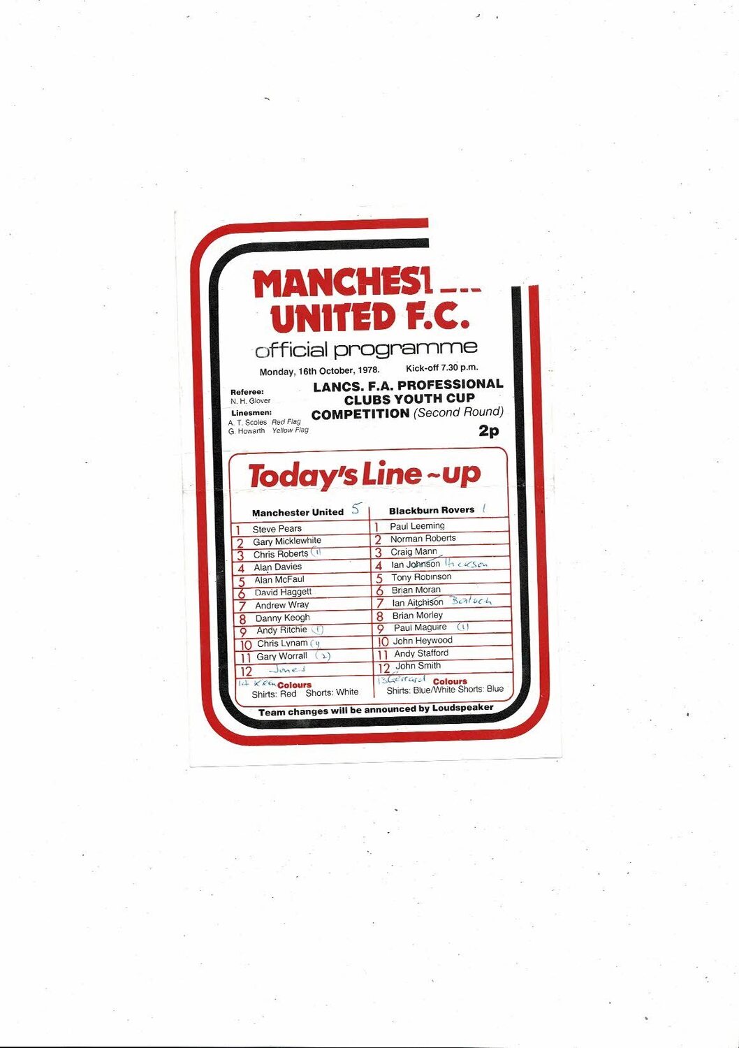 Manchester United v Blackburn Rovers Lancs Youth Cup Football Programme 1978/79