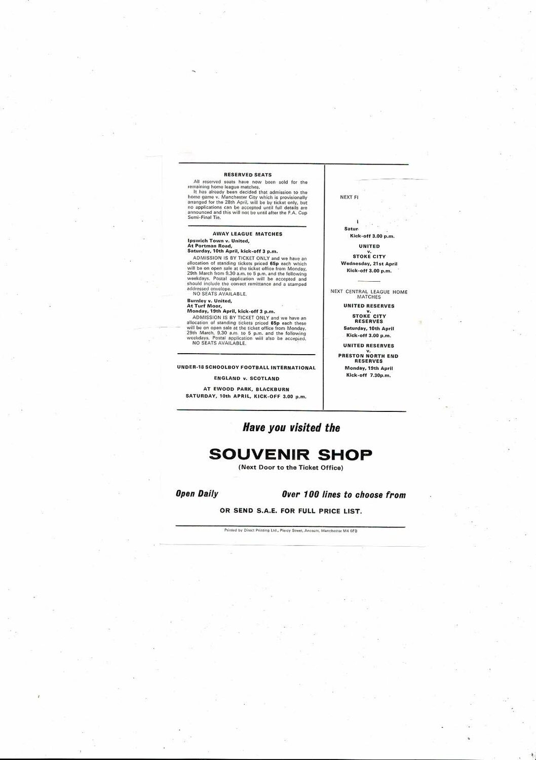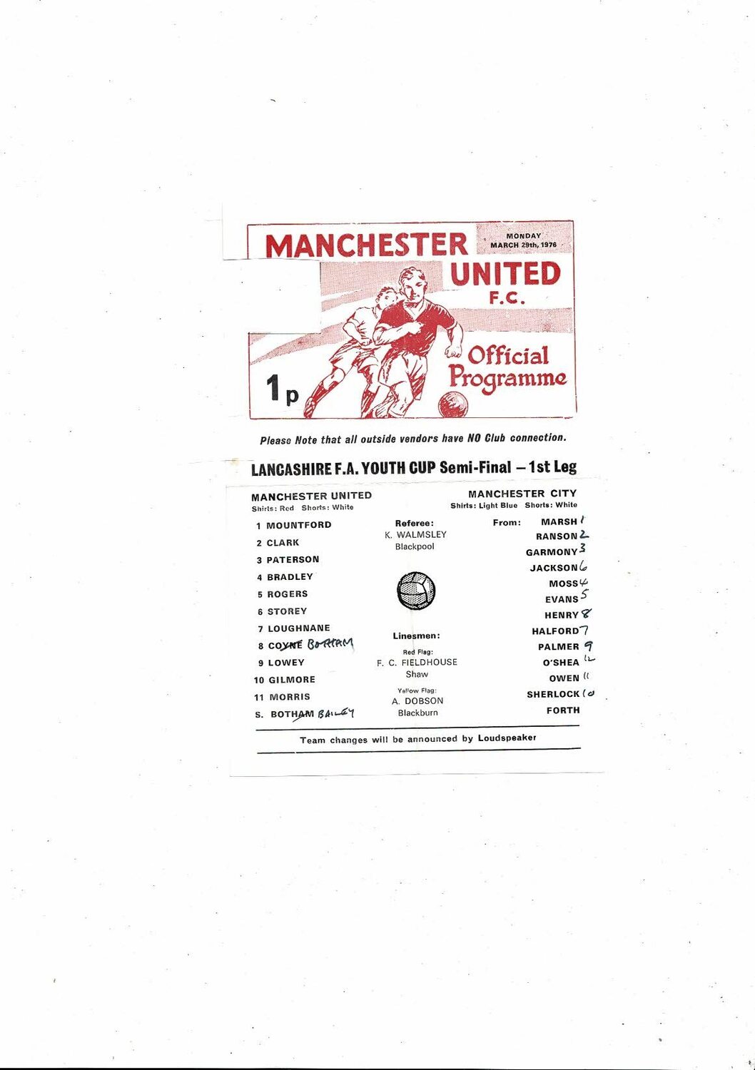 Manchester United v Manchester City Lancs Youth Cup Semi Final Programme 1975/76
