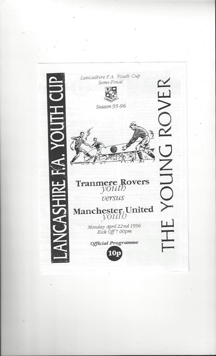 Tranmere Rovers v Manchester United Lancashire Youth Cup Semi Final Football Programme 1995/96