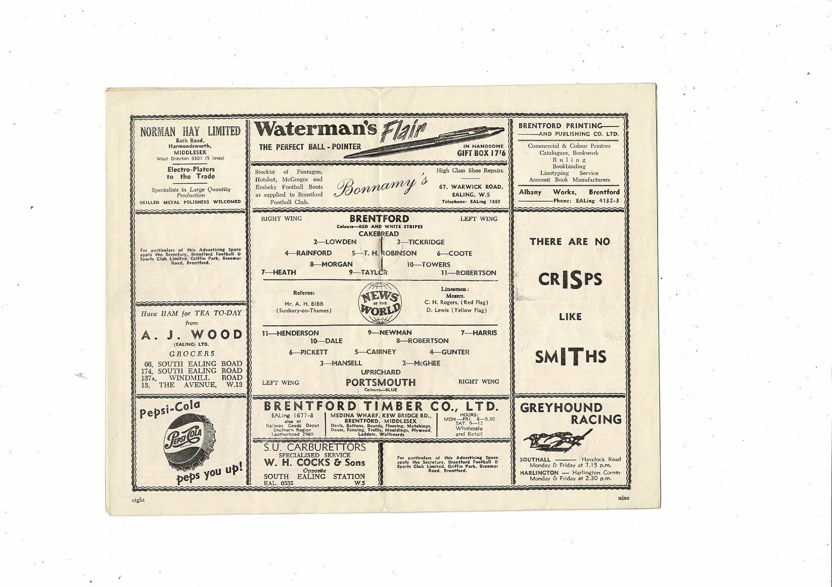 1955/56 Brentford v Portsmouth Southern Floodlight Cup Football Programme
