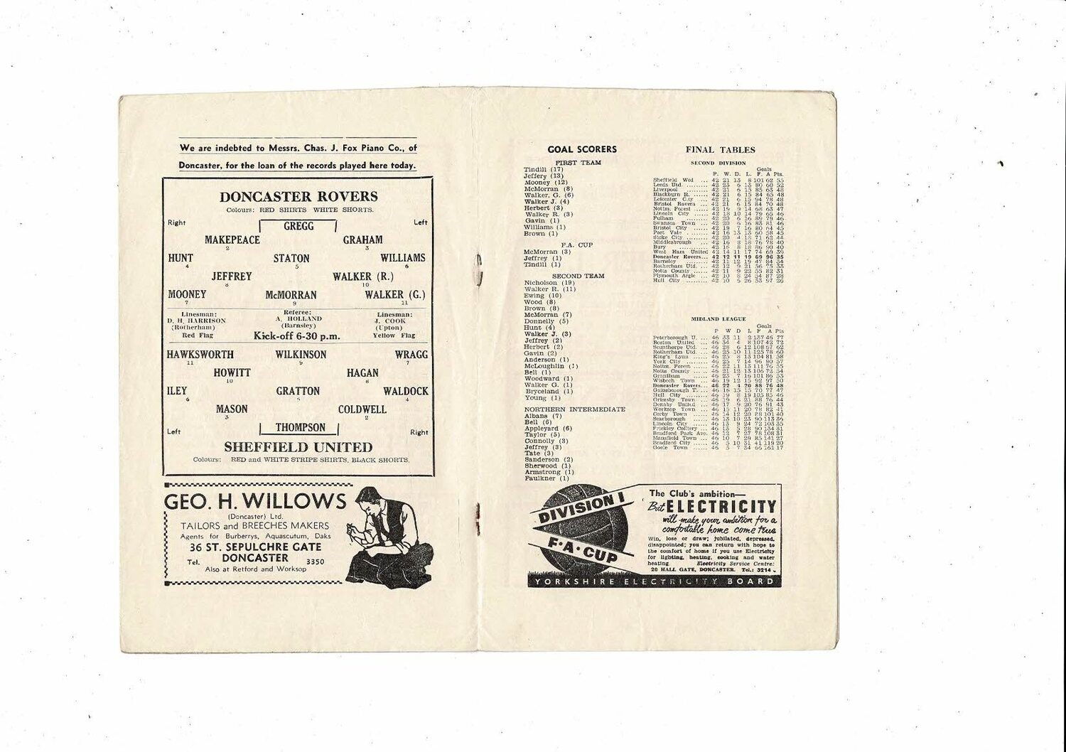 1955/56 Doncaster v Sheffield United Sheffield & Hallamshire County Cup Final