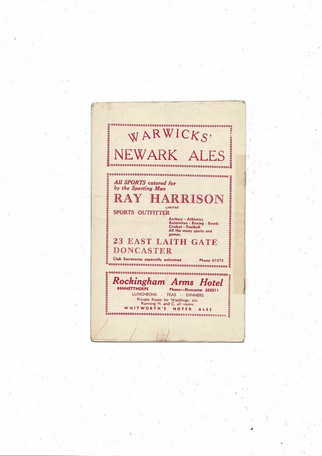 This original Football Programme is creased with several tears, tape on spine across both staples one of which is rusty, tiny nic & ink marks on back page & small piece missing on spine. Please see scans.