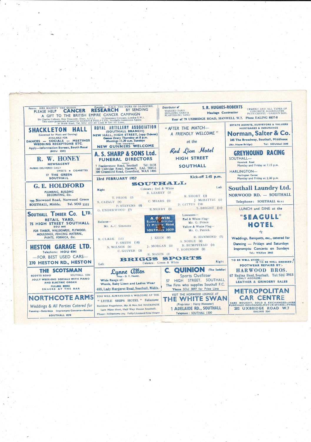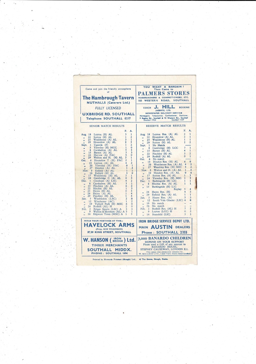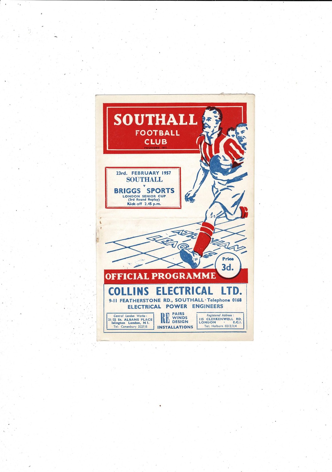 1956/57 Southall v Briggs Sports London Senior Cup Replay Football Programme