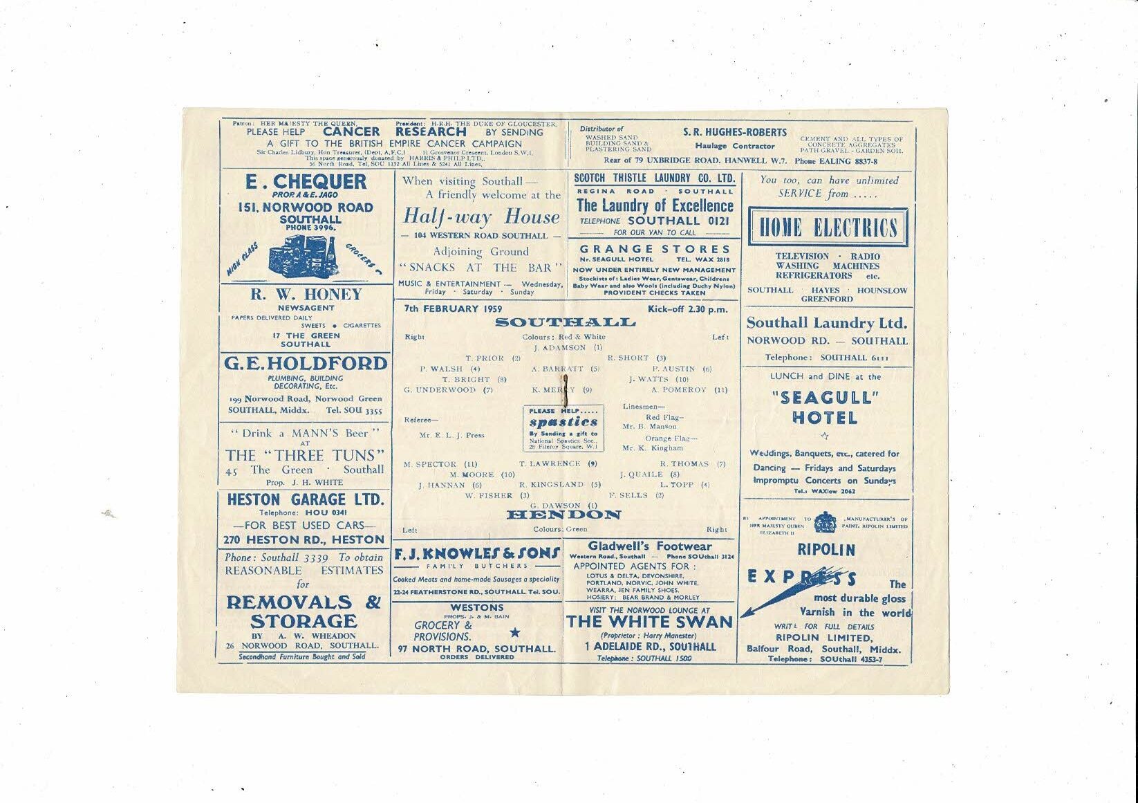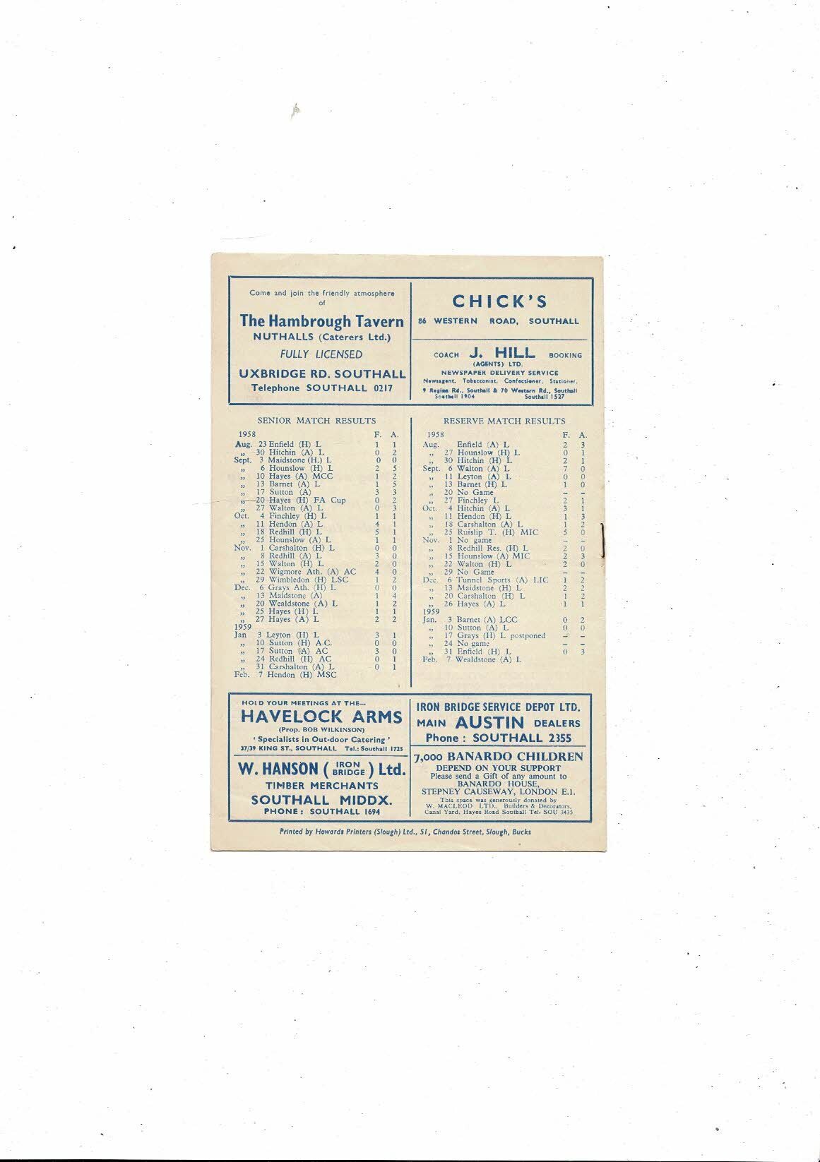 1958/59 Southall v Hendon Middlesex Senior Cup Football Programme