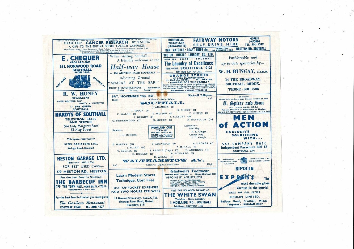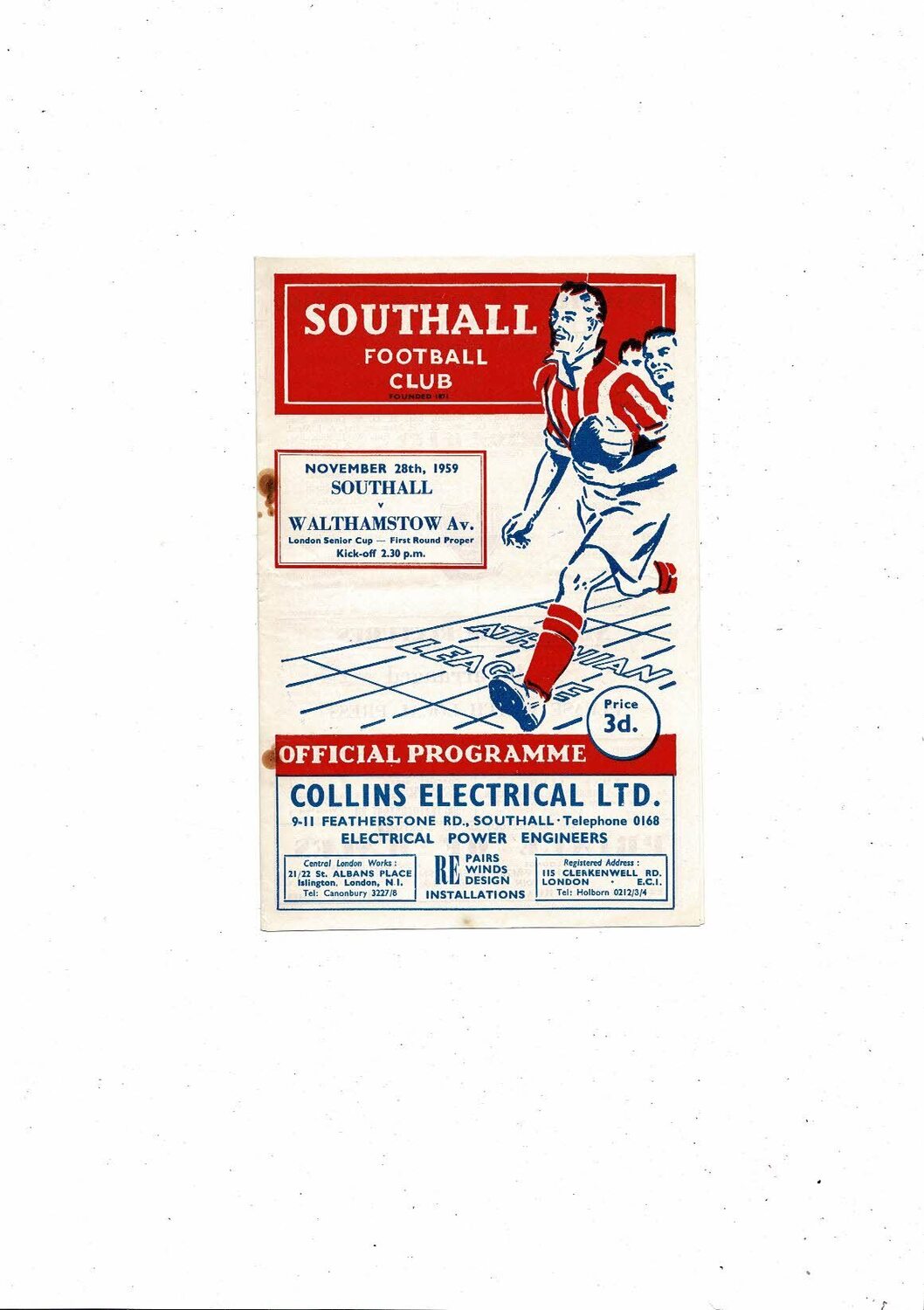 1959/60 Southall v Walthamstow London Senior Cup Football Programme