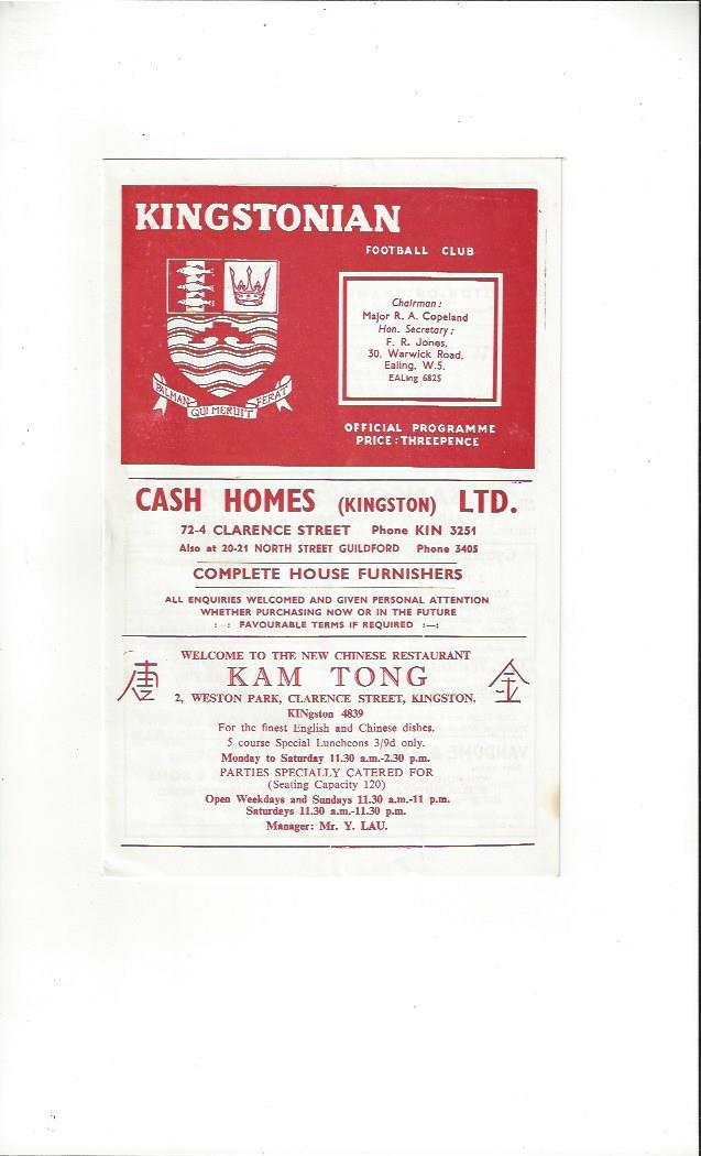 1960/61 Kingstonian v Dulwich Hamlet Surrey Senior Cup Football Programme