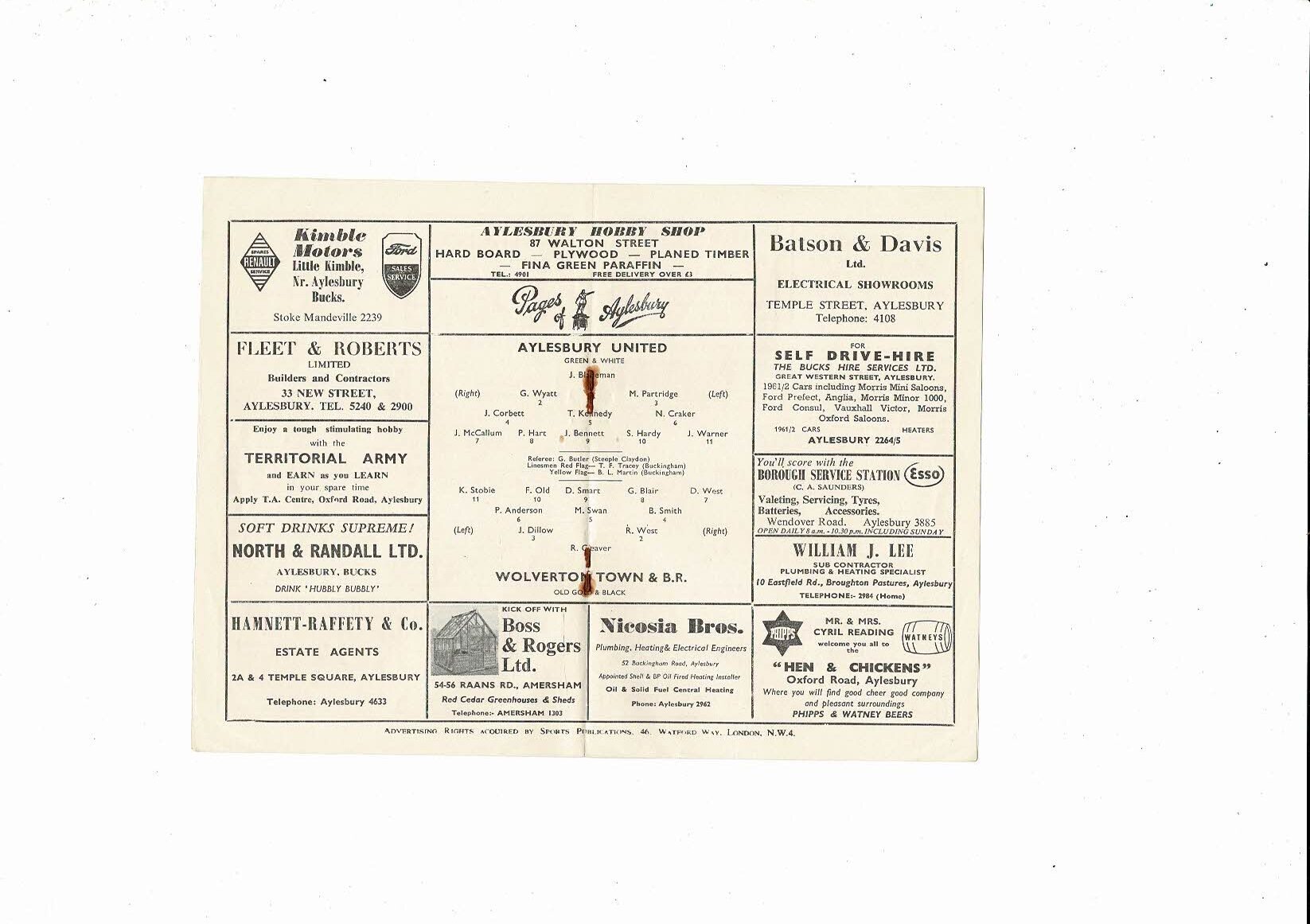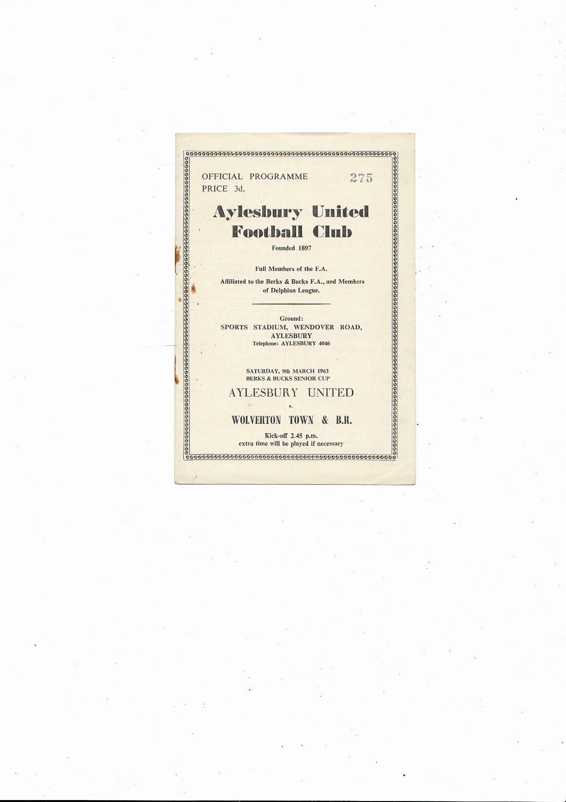 1962/63 Aylesbury United v Wolverton Town Berks & Bucks Cup Football Programme