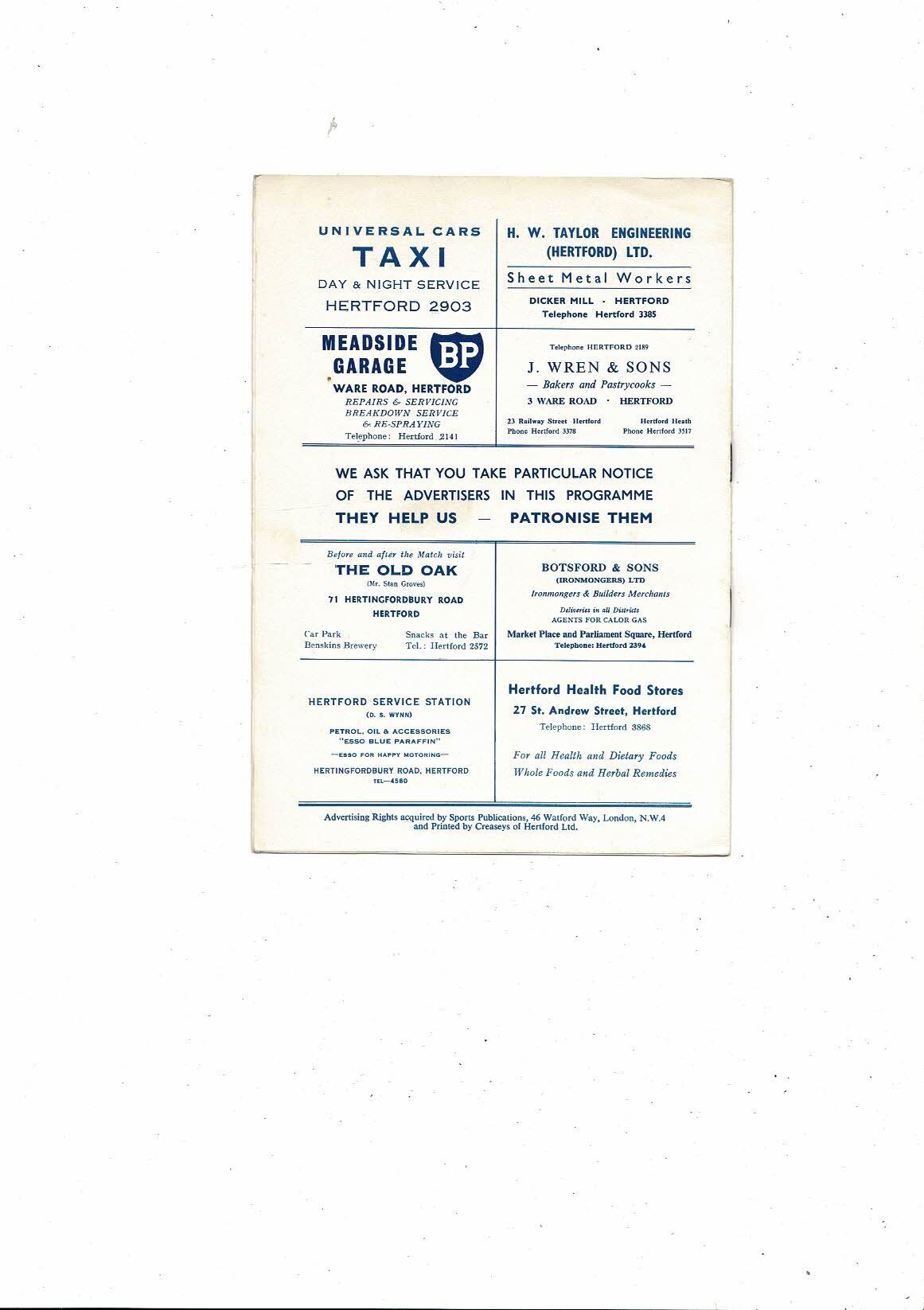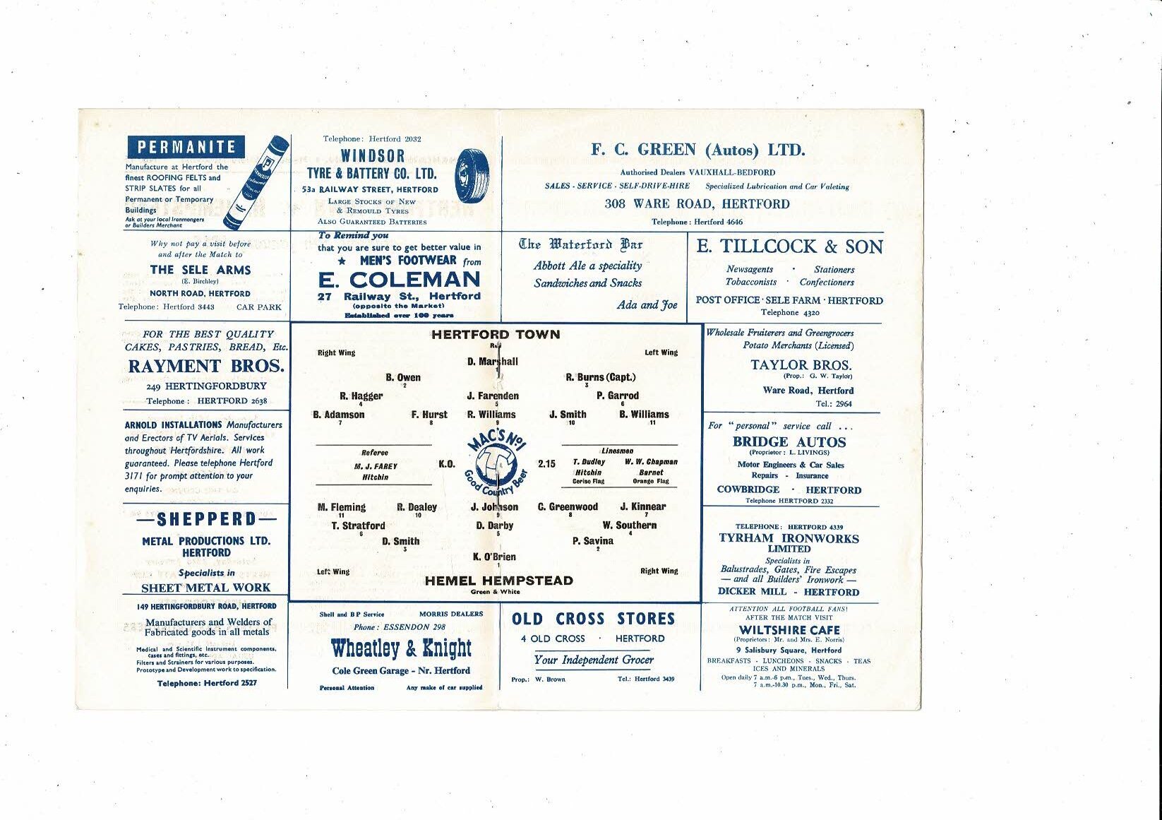 1964/65 Hertford v Hemel Hempstead Athenian League Memorial Shield Programme