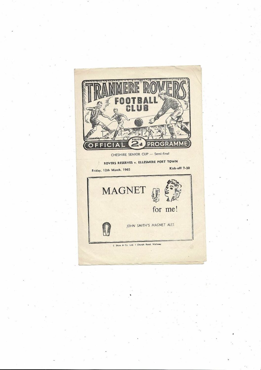 1964/65 Tranmere v Ellesmere Port Cheshire Cup Semi Final Football Programme