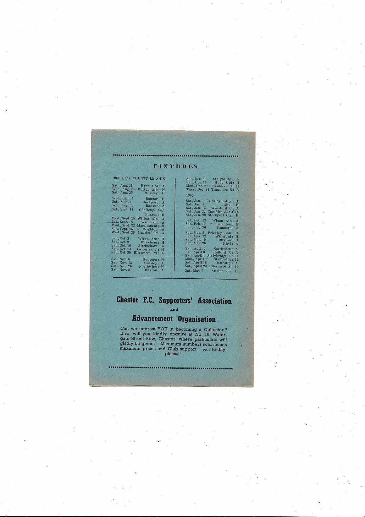 1965/66 Chester v Tranmere Rovers Cheshire Bowl Semi Final Football Programme