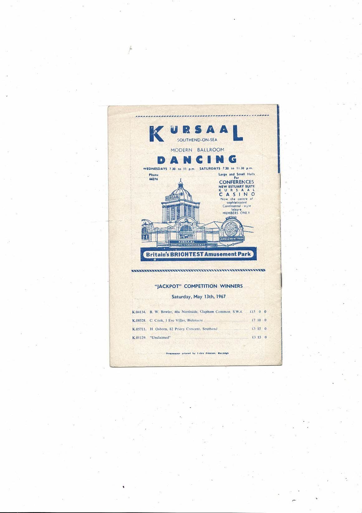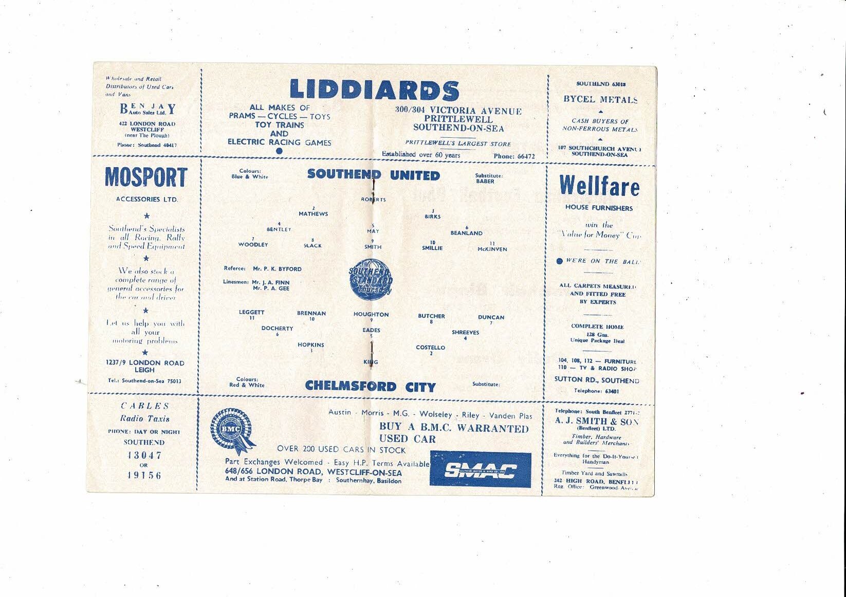 1966/67 Southend United v Chelmsford Essex Professional Cup Final Programme
