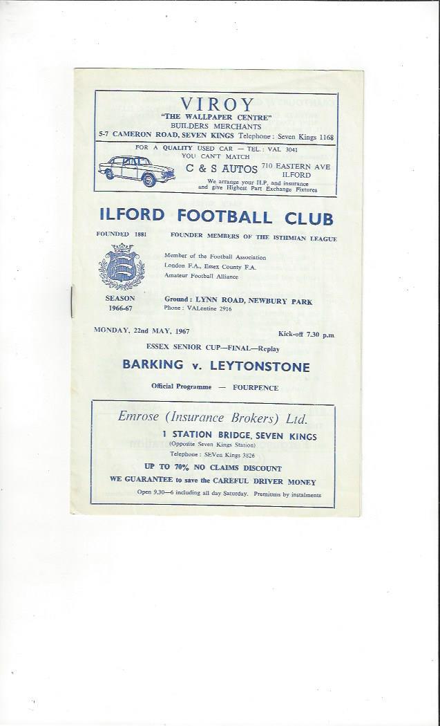 1967 Barking v Leytonstone Essex Snr Cup Final Replay Football Programme @ Ilford