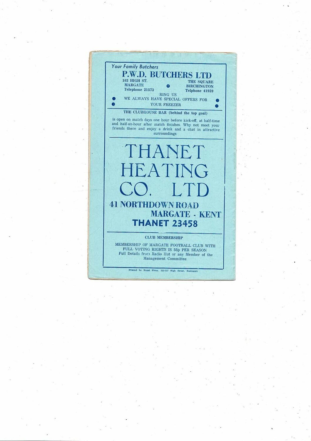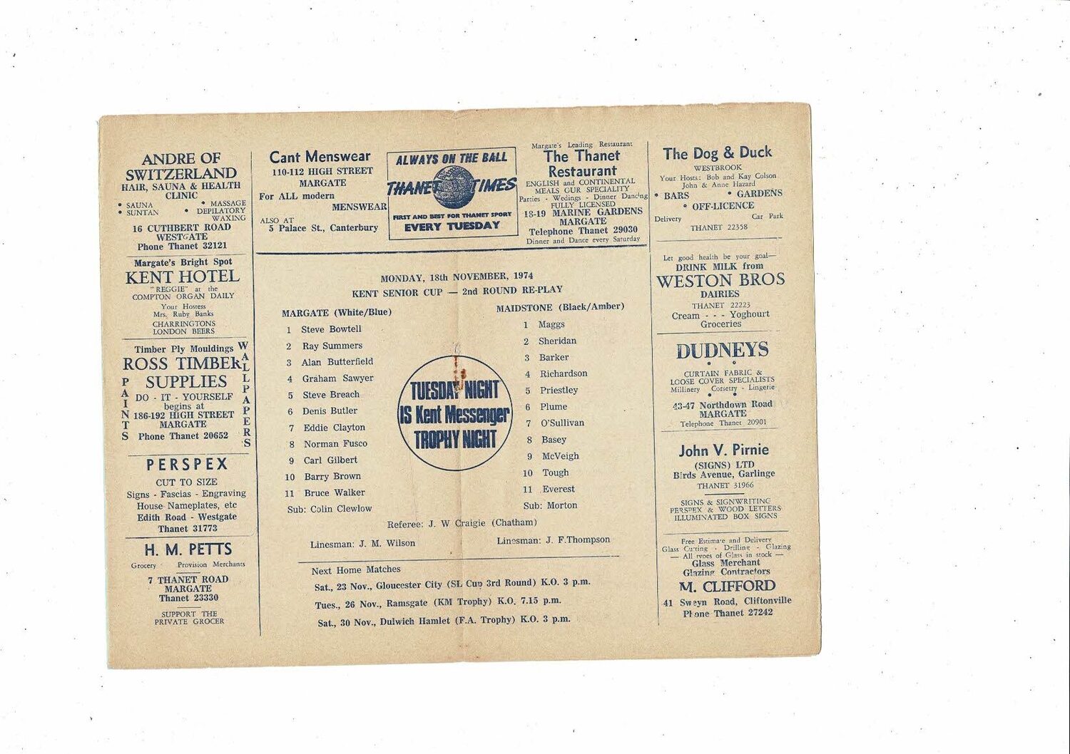 1974/75 Margate v Maidstone Kent Senior Cup Replay Football Programme