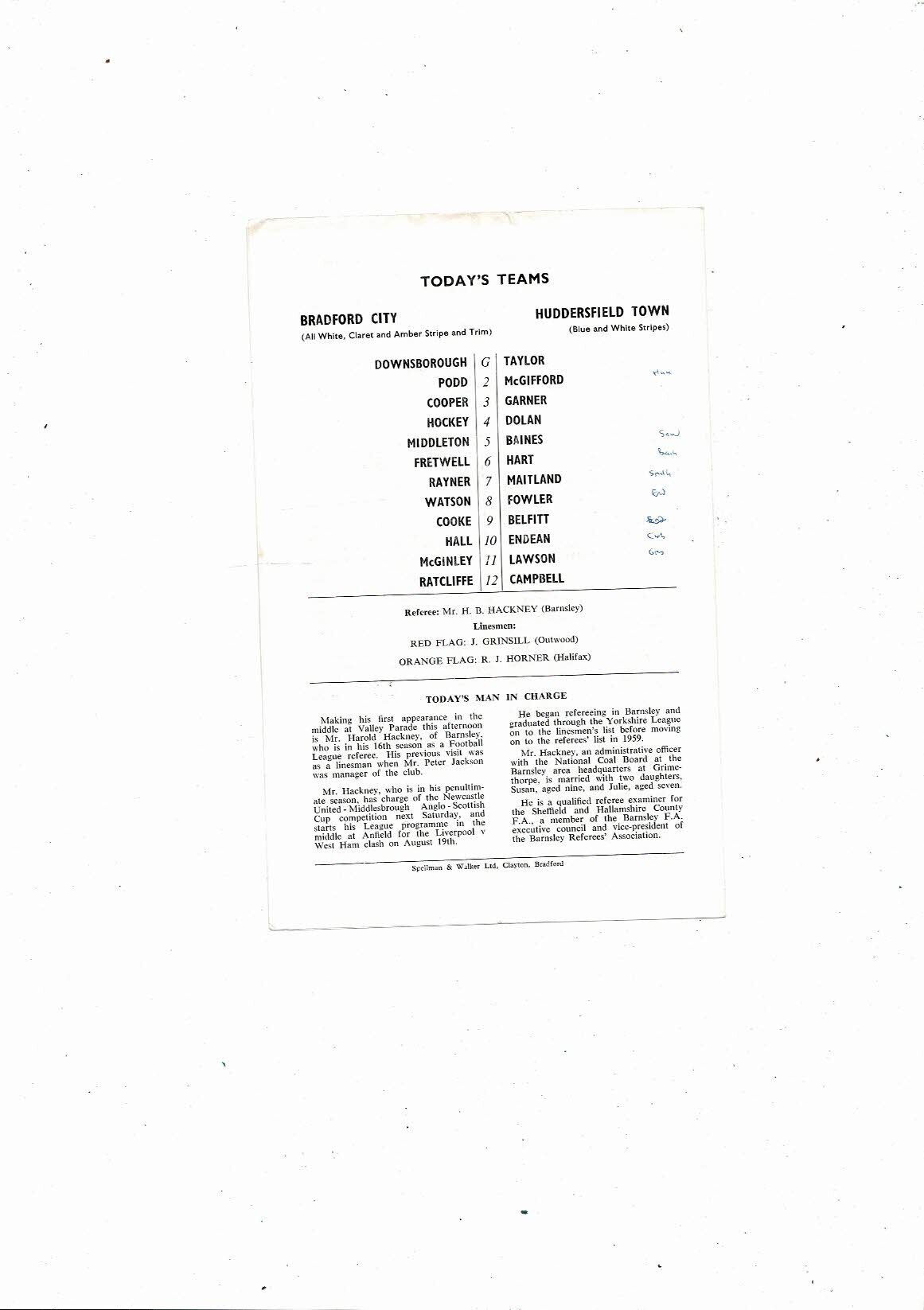 This Original 4 page Football Programme is creased also has a fold with tiny nic on back page & handwriting on back. Please see scans