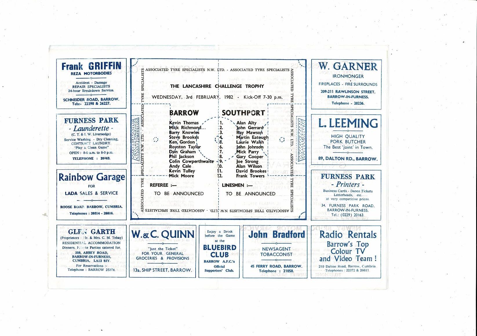 1981/82 Barrow v Southport Lancashire Challenge Trophy Football Programme