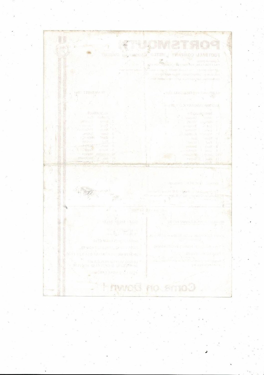 1984/85 Portsmouth v Aldershot Hampshire Professional Cup Football Team Sheet