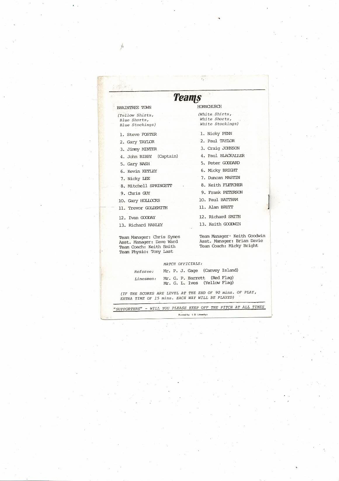 1986/87 Braintree Town v Hornchurch Essex Senior Challenge Trophy Final