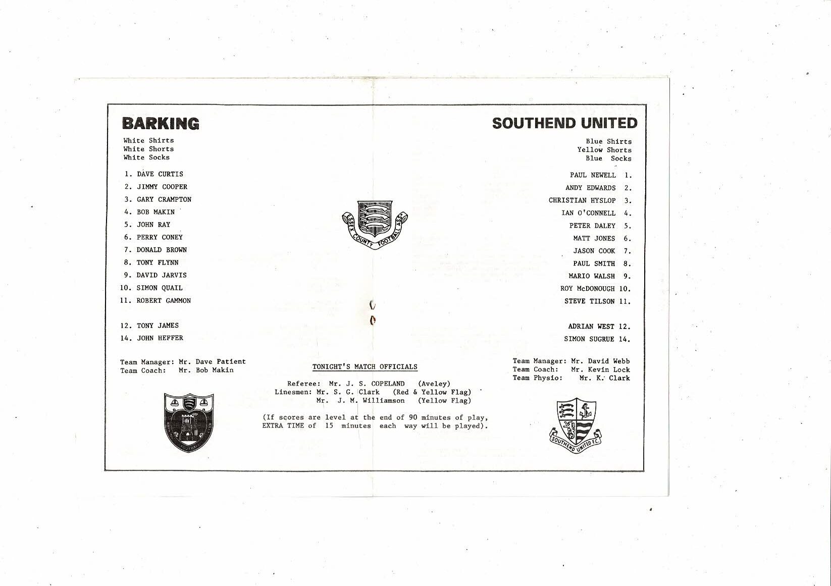 1989/90 Barking v Southend United Essex Senior Cup Final @ Dagenham