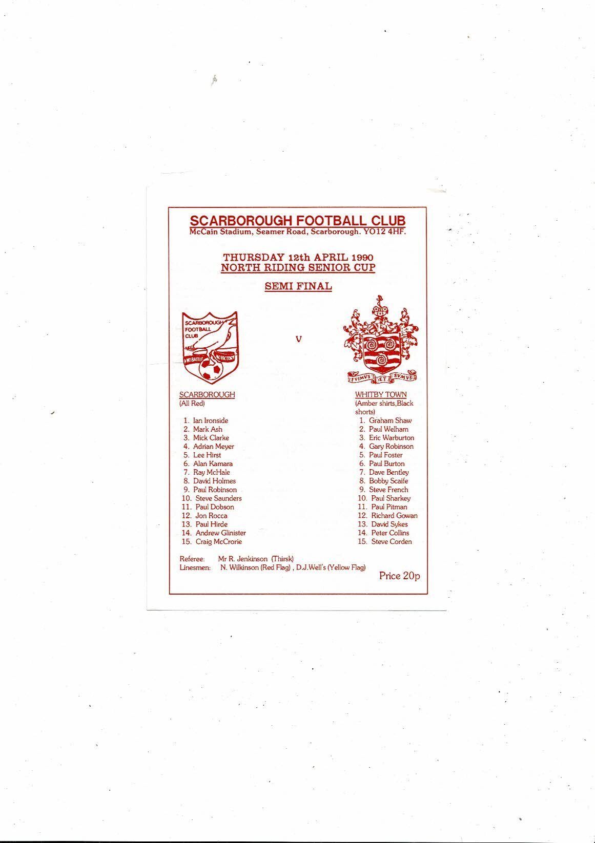 1989/90 Scarborough v Whitby Town North Riding Cup Semi Final