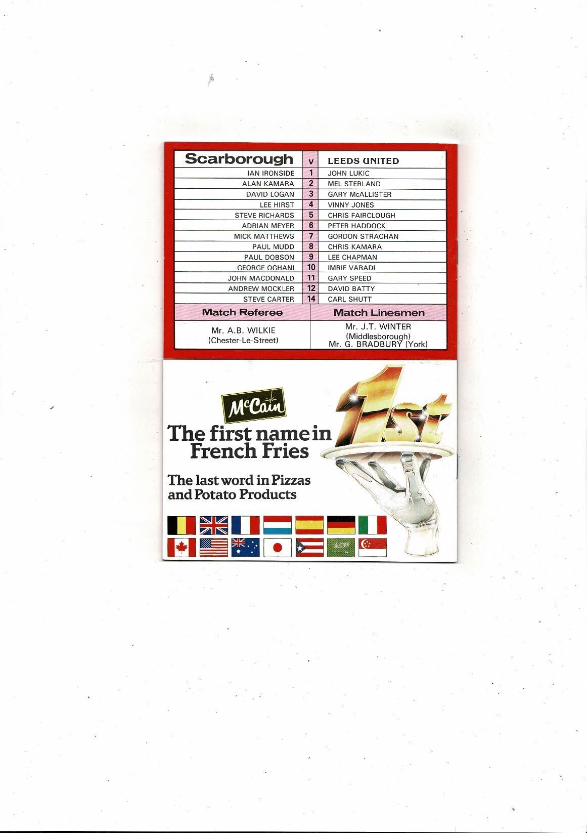 1990/91 Scarborough v Leeds United Yorkshire & Humberside Cup Football Programme