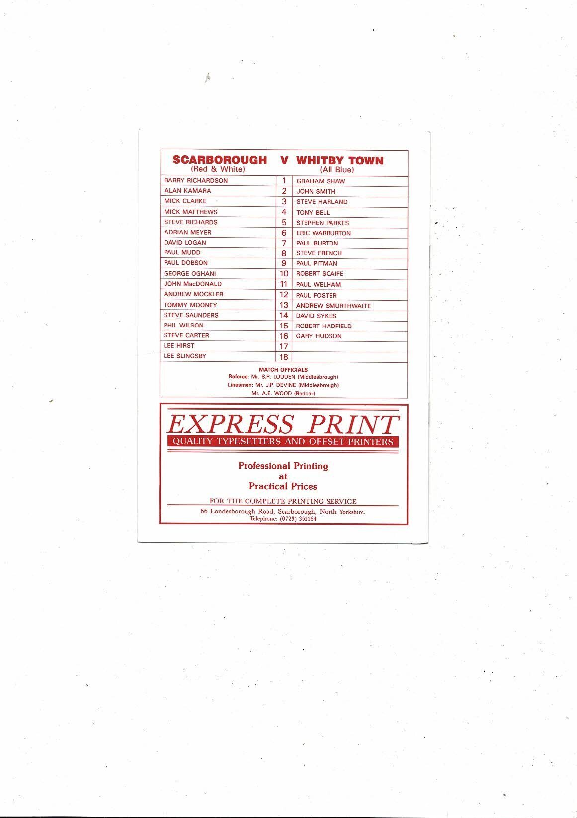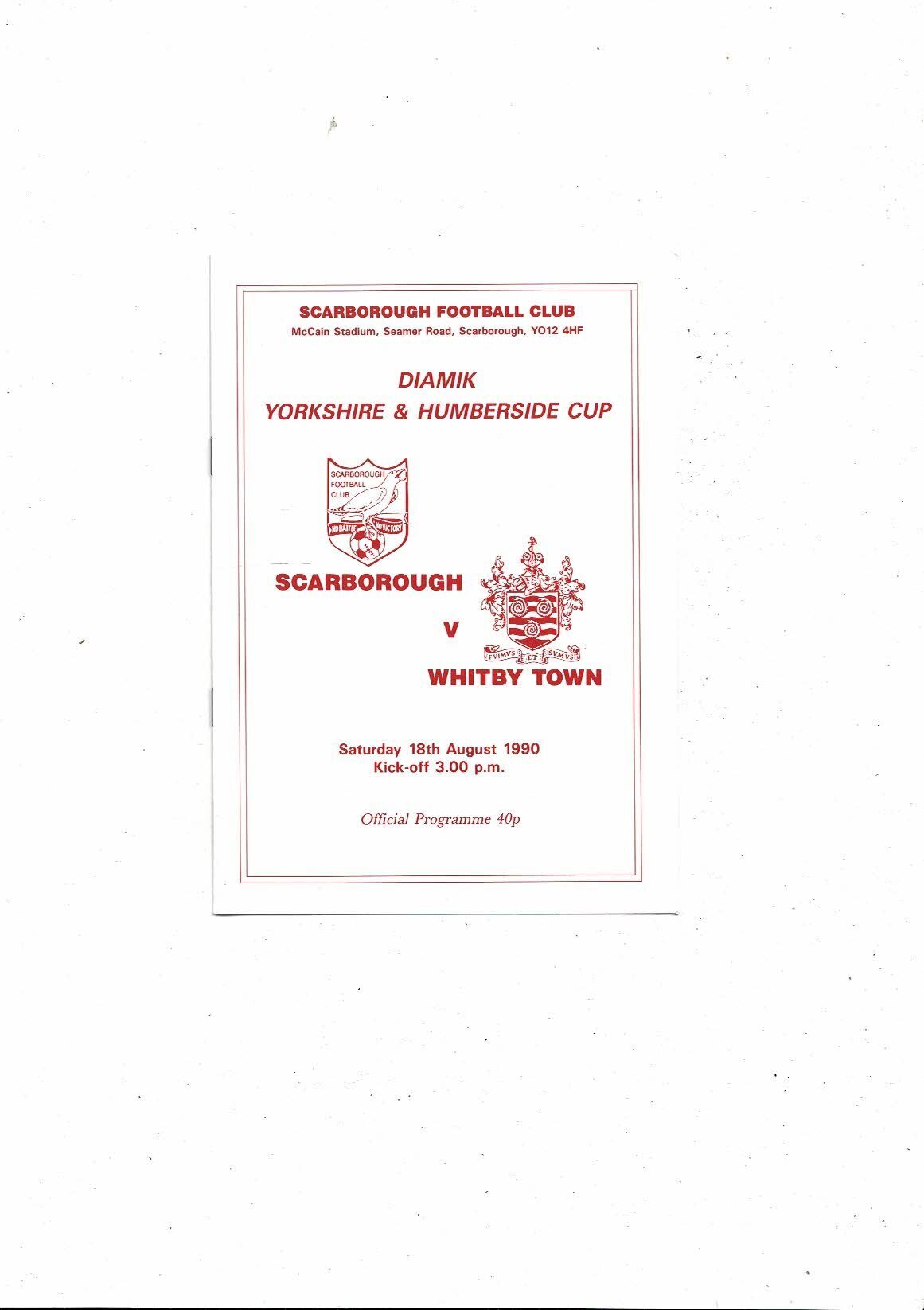 1990/91 Scarborough v Whitby Town Yorks & Humberside Cup Football Programme
