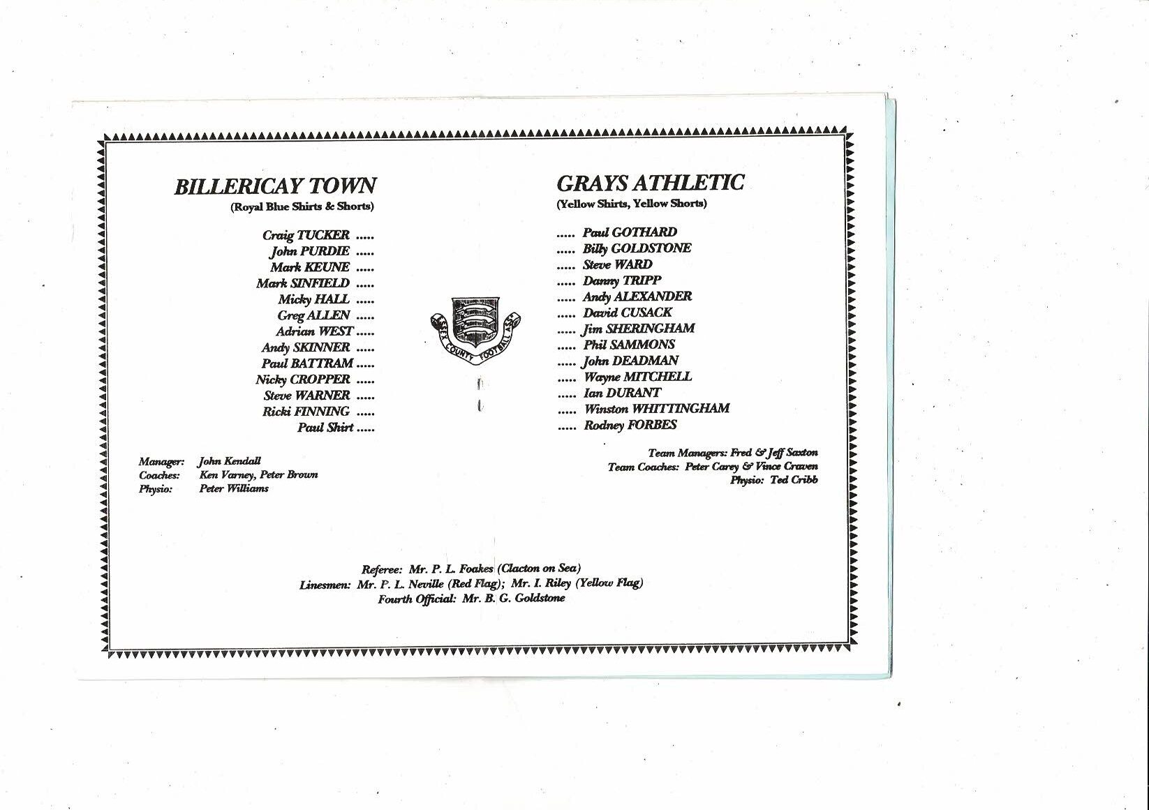 1993/94 Billericay Town v Grays Athletic Essex Senior Cup Final @ Dagenham