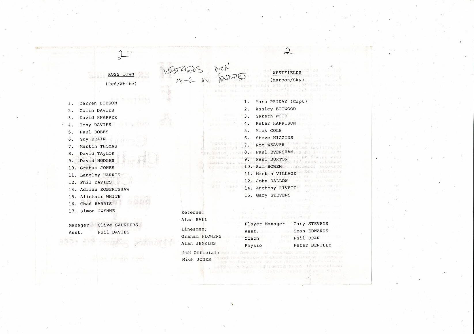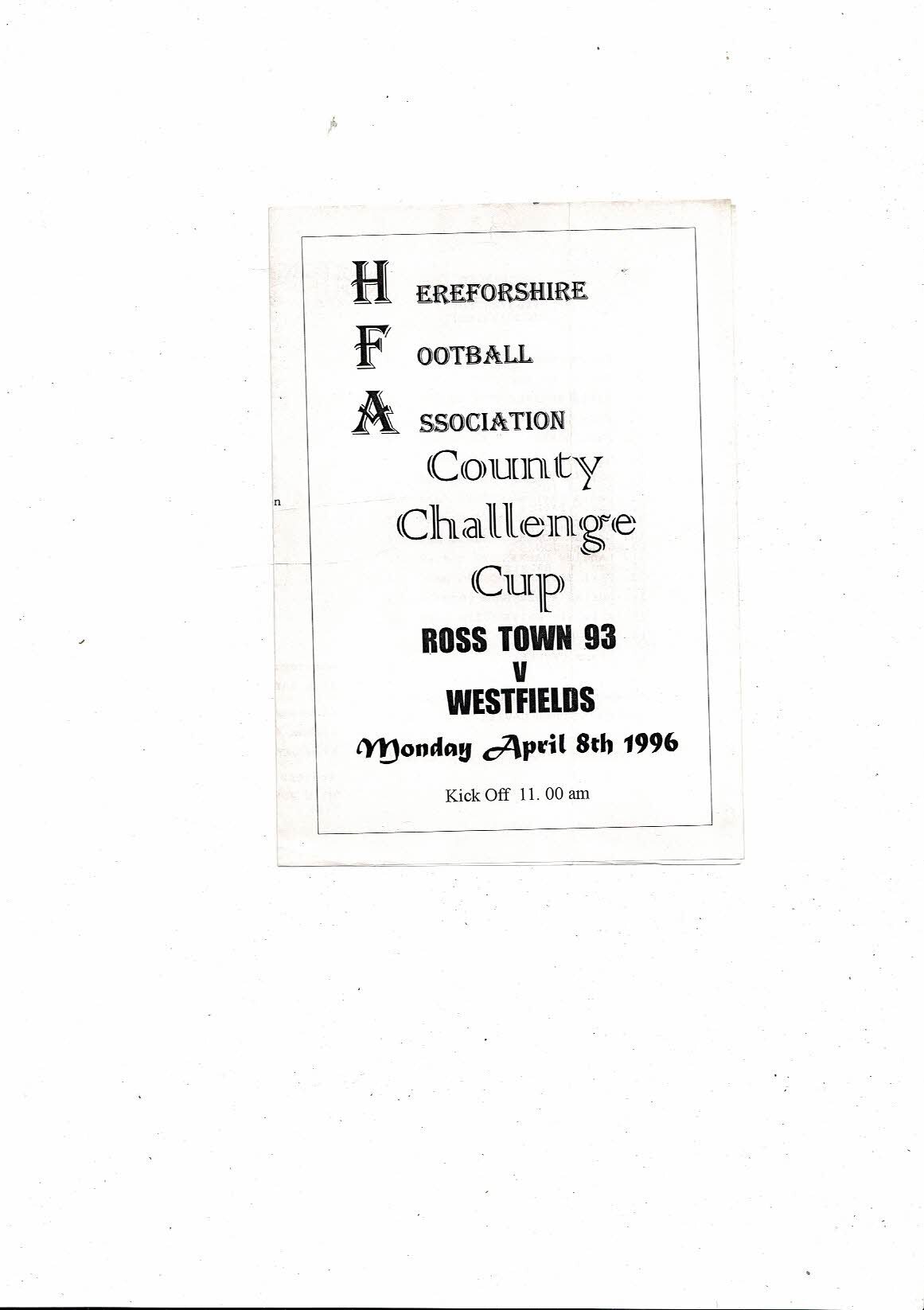 1995/96 Ross Town 93 v Westfields Herefordshire County Cup Final Football Programme
