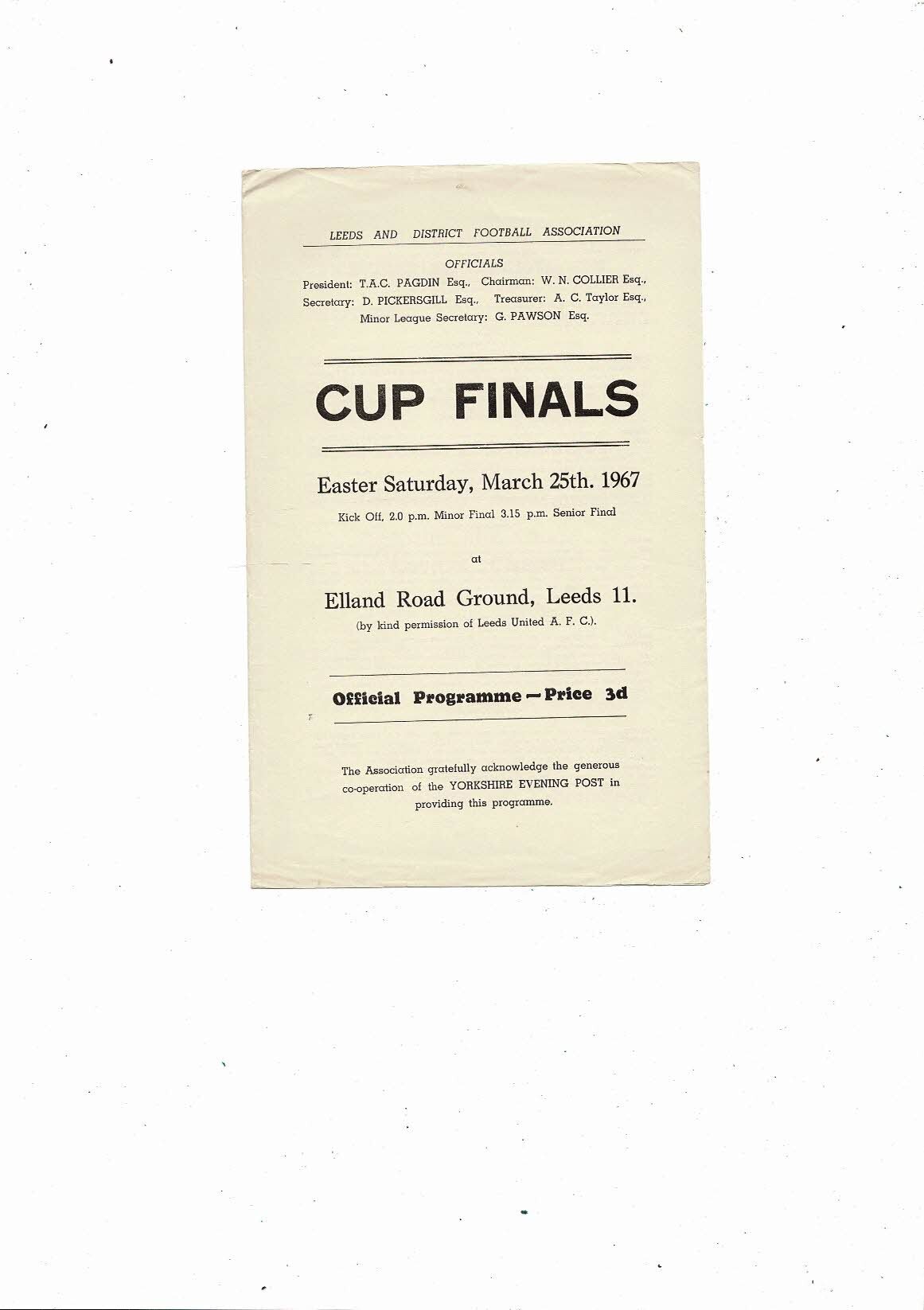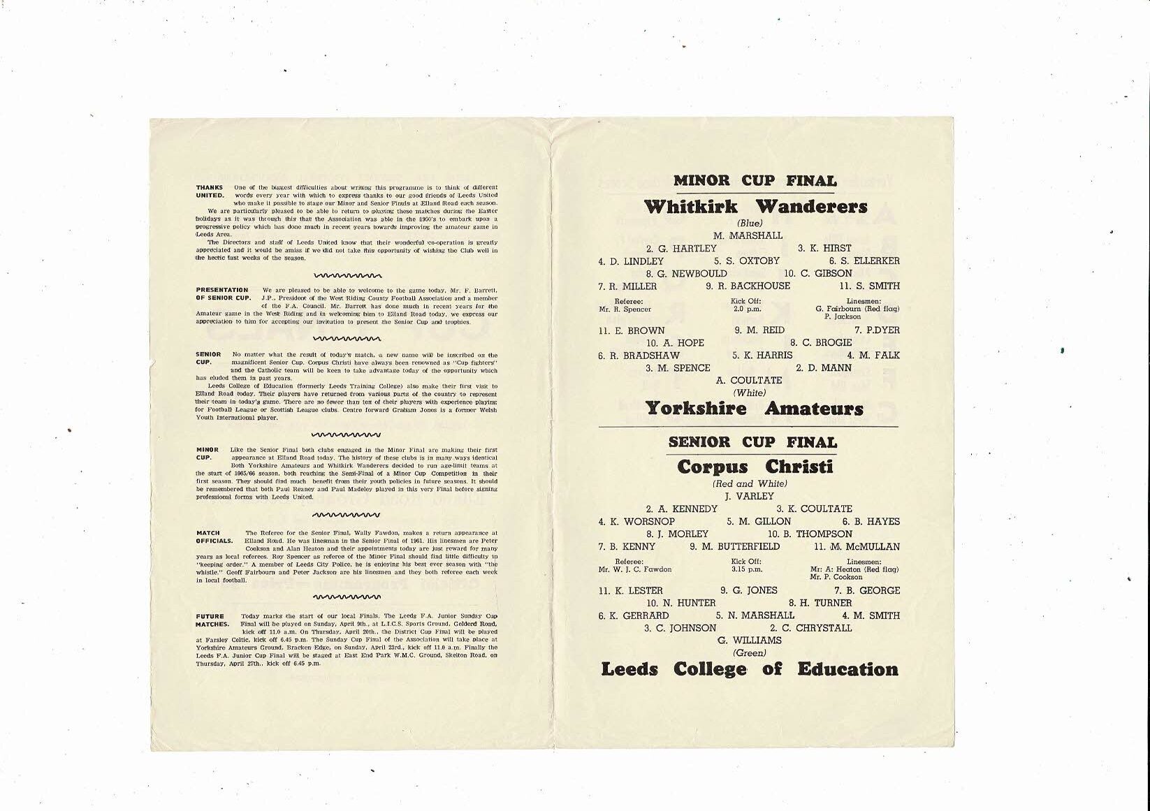 Corpus Christi v Leeds College Leeds Snr Cup Final Programme 1967 @ Leeds United