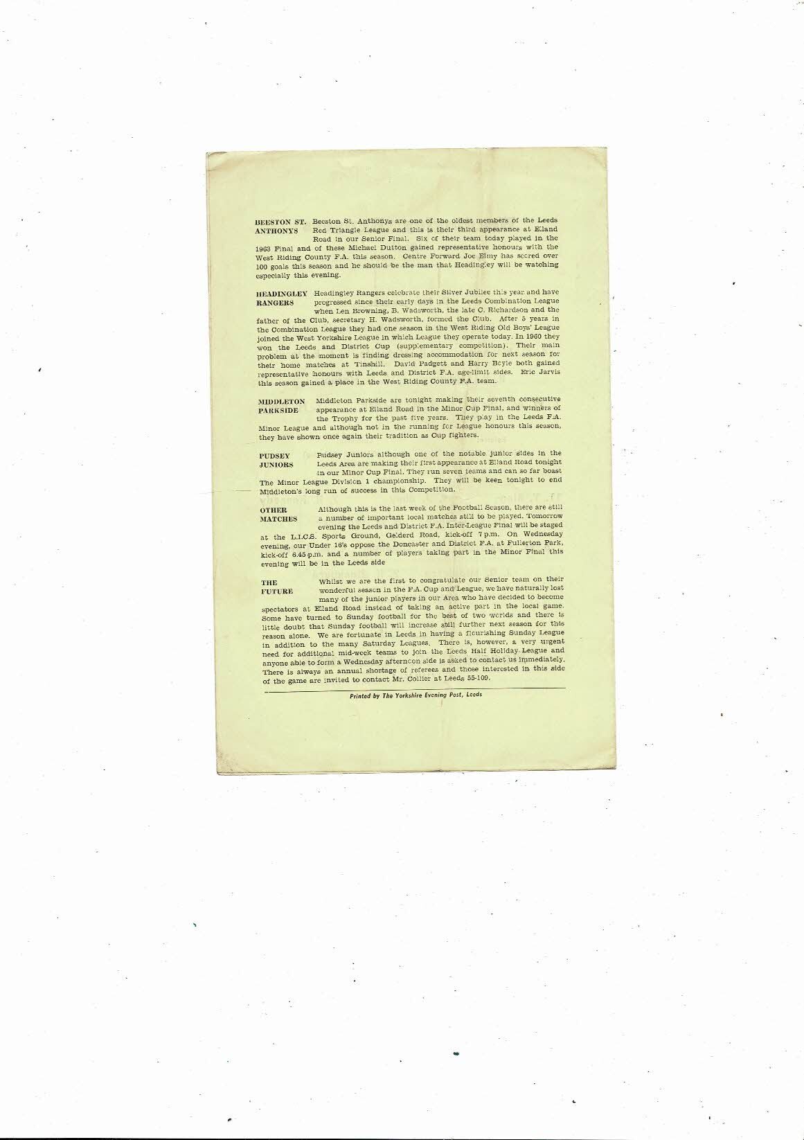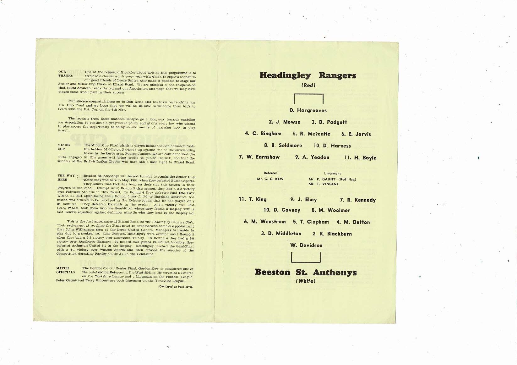 Headingley Rangers v Beeston St Anthonys Leeds Snr Cup Final 1965 @ Leeds Utd
