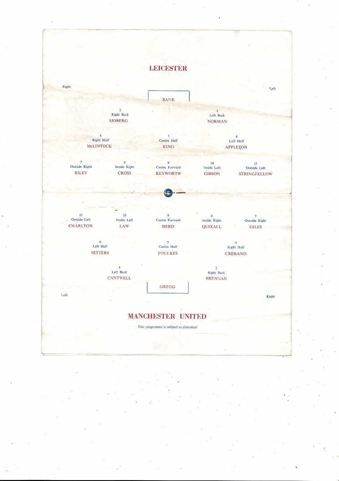 1962/63 Leicester City v Manchester United Pirate Football Programme 16th April