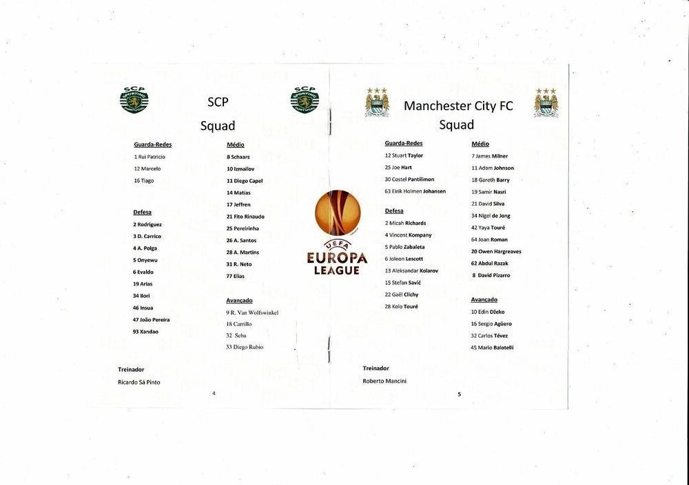 Sporting Clube De Portugal v Manchester City Unofficial Europa League Football Programme 2011/12
