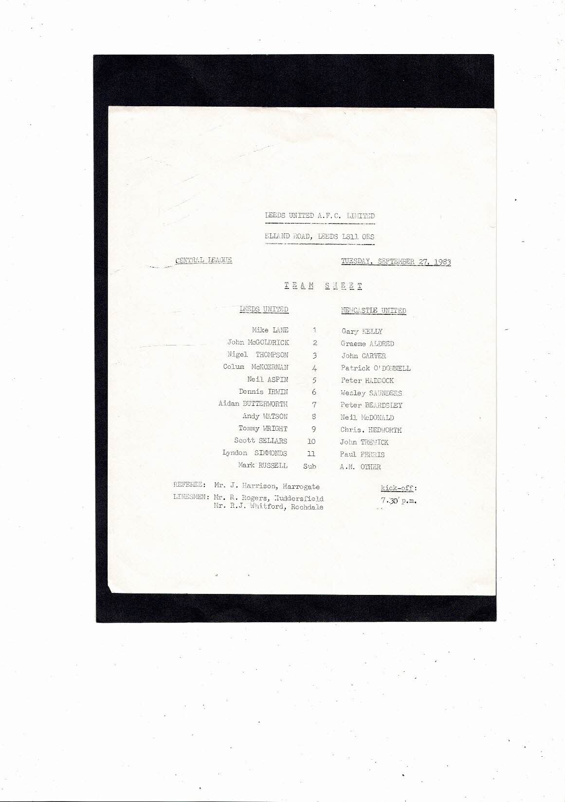 1983/84 Leeds United v Newcastle United Central League Football Programme