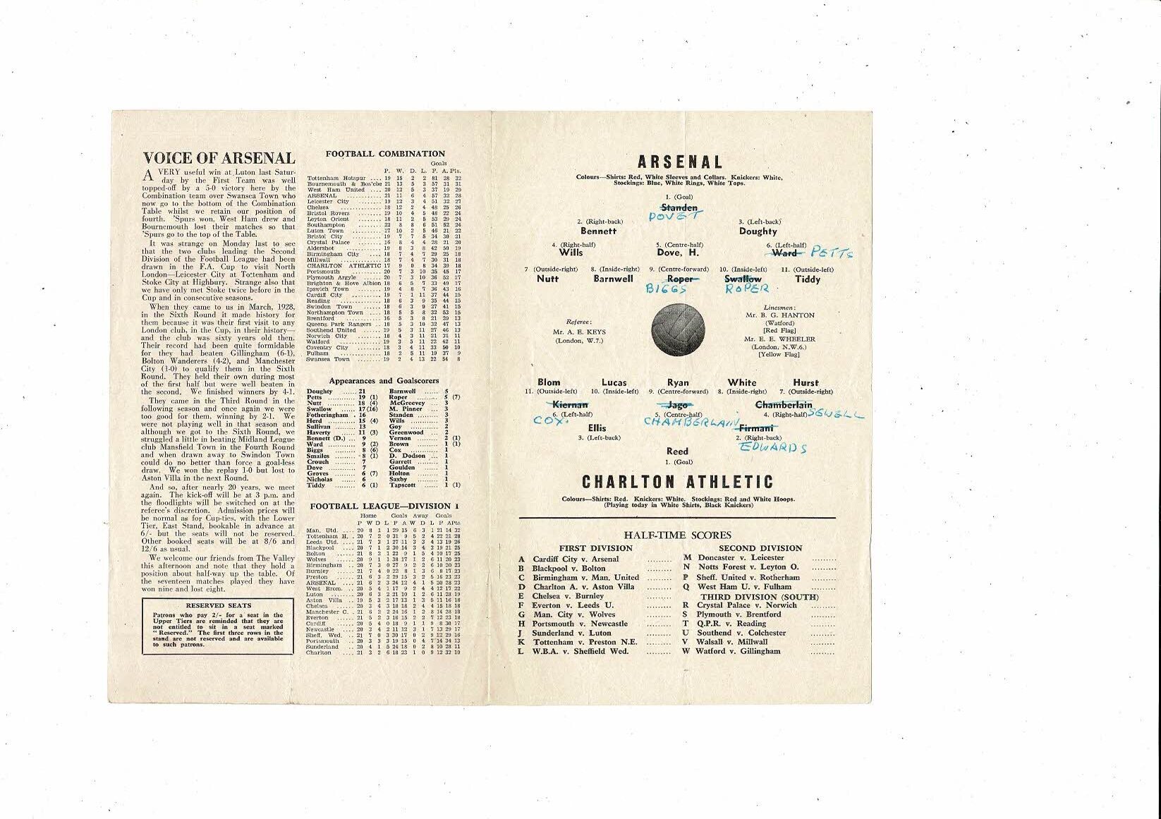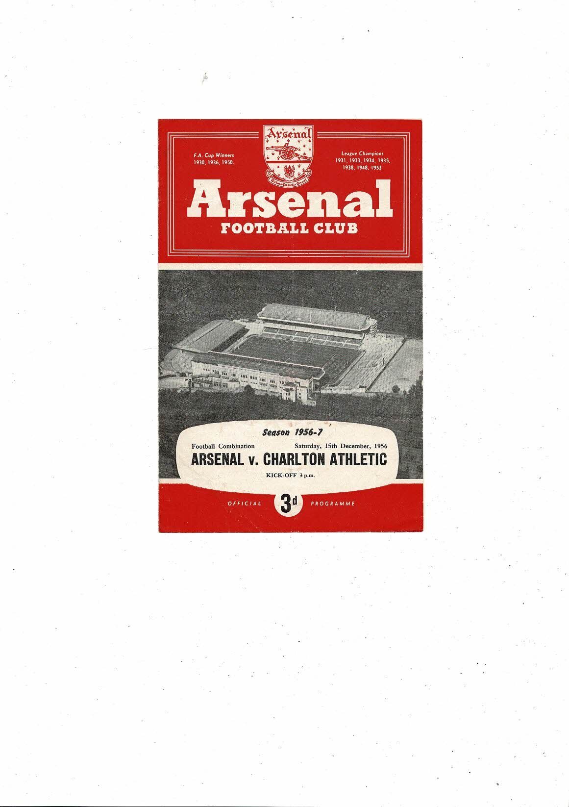 Arsenal v Charlton Athletic Football Combination Programme 1956/57