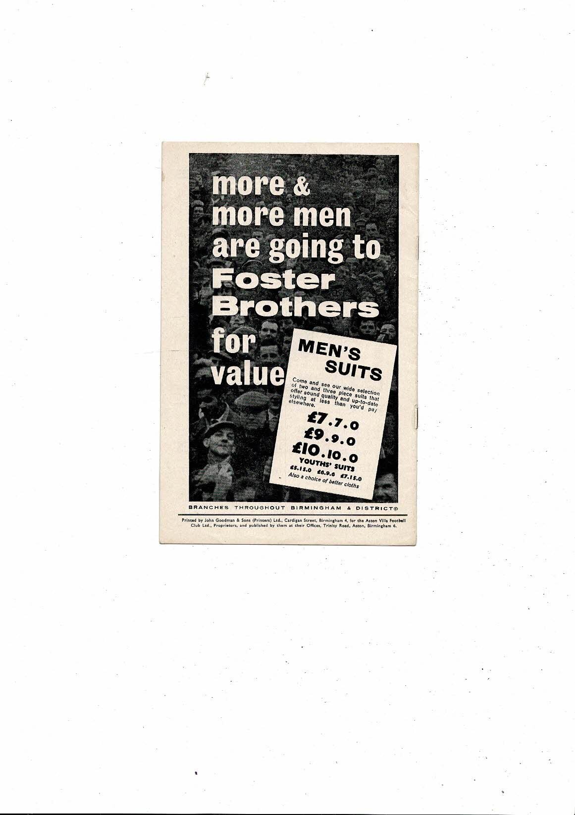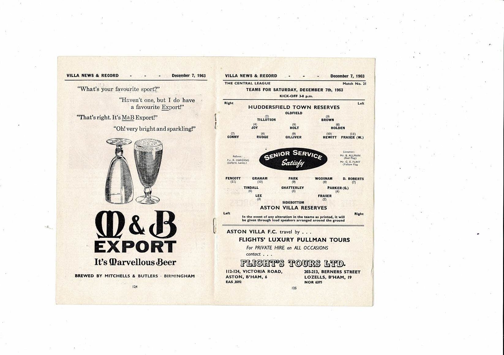 Aston Villa v Huddersfield Town Central League Football Programme 1963/64