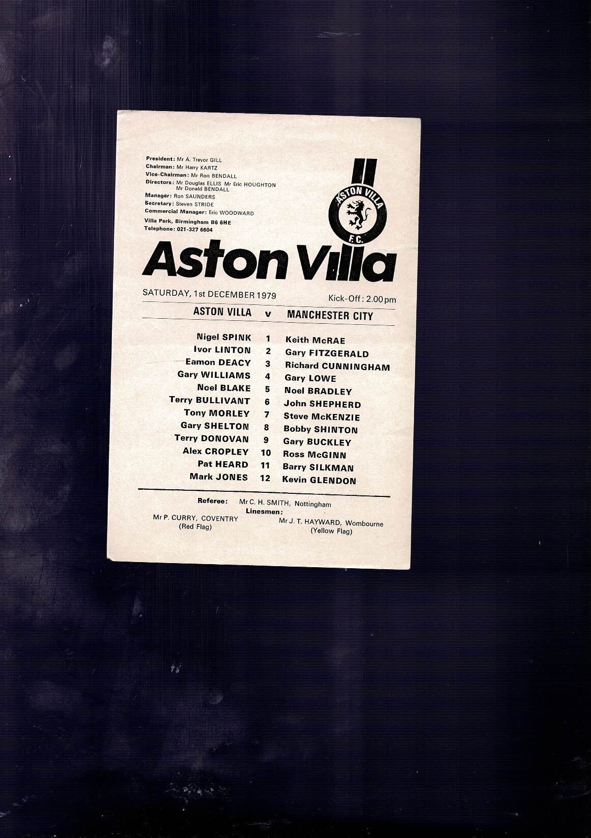 Aston Villa v Manchester City Central League Football Programme 1979/80