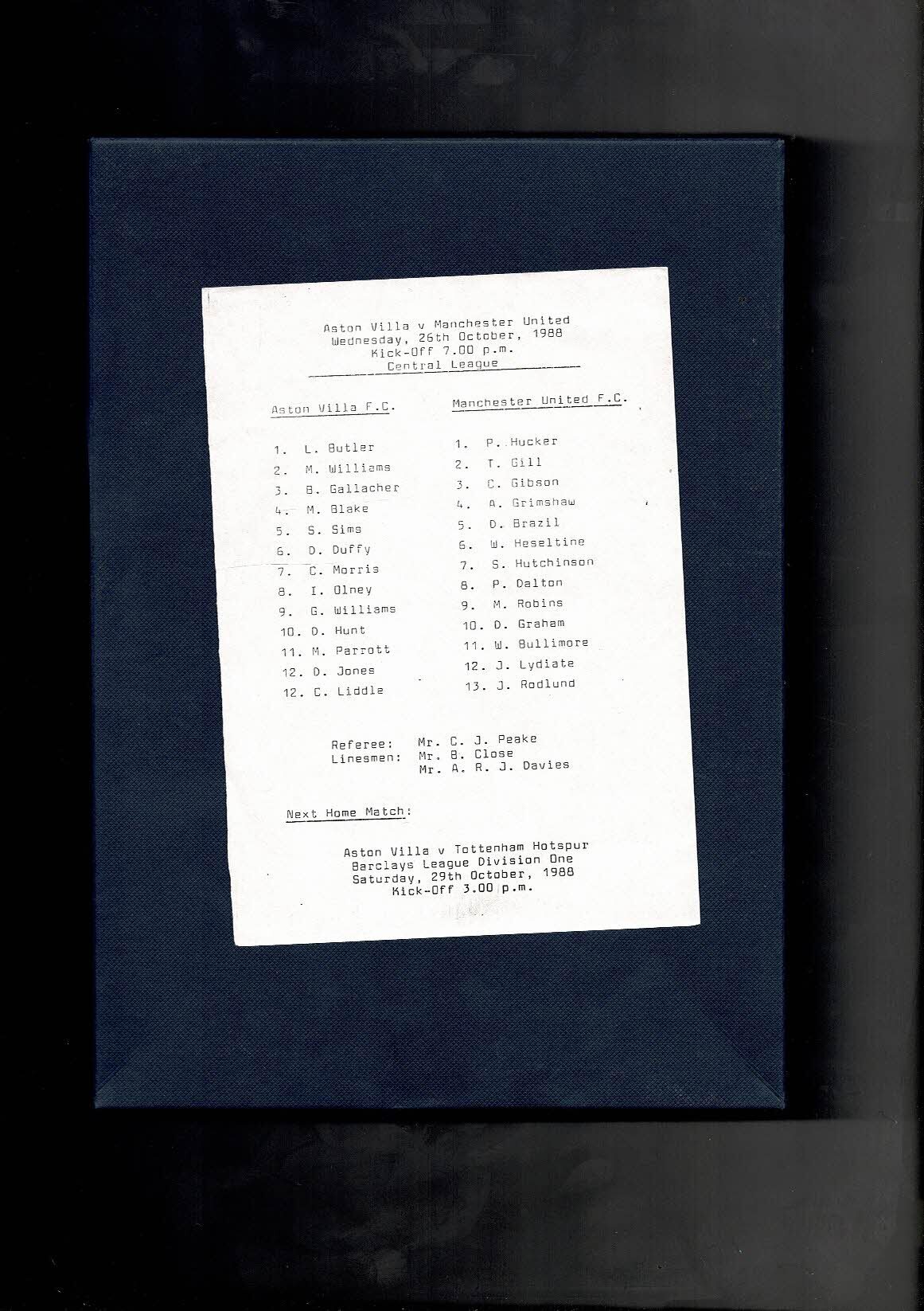 Aston Villa v Manchester United Central League Football Programme 1988/89