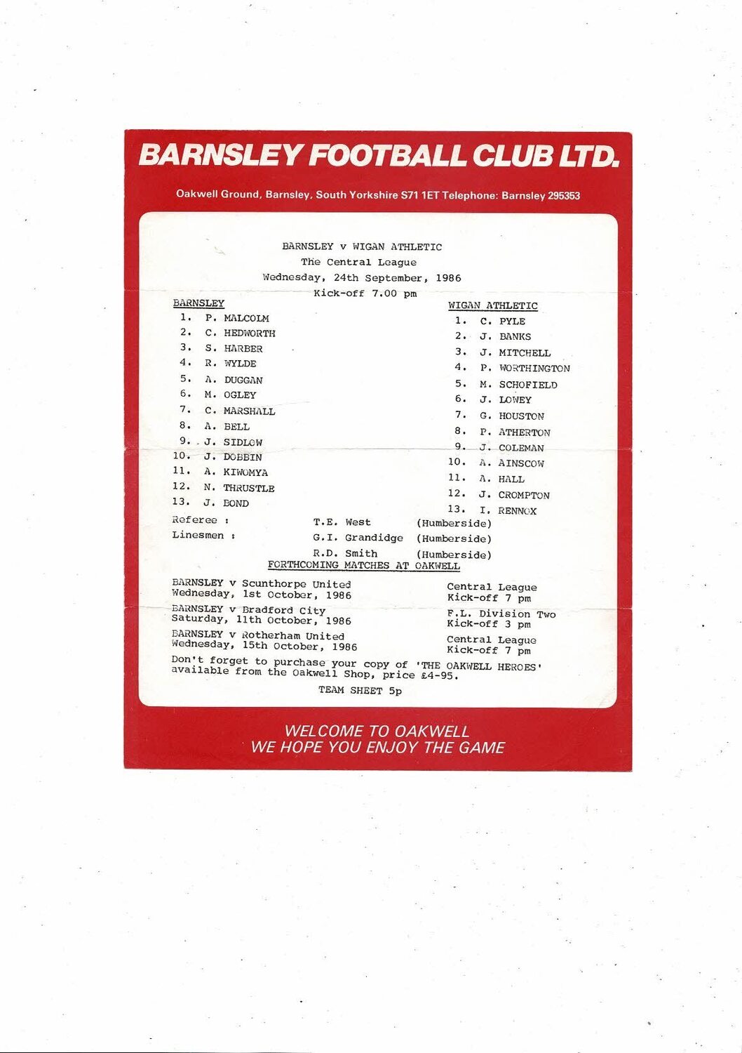 Barnsley v Wigan Athletic Central League Football Programme 1986/87