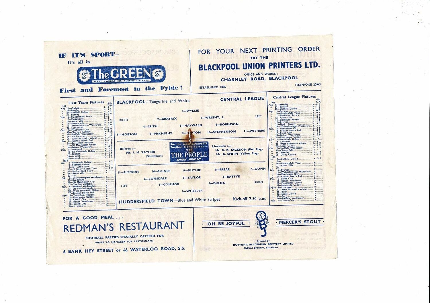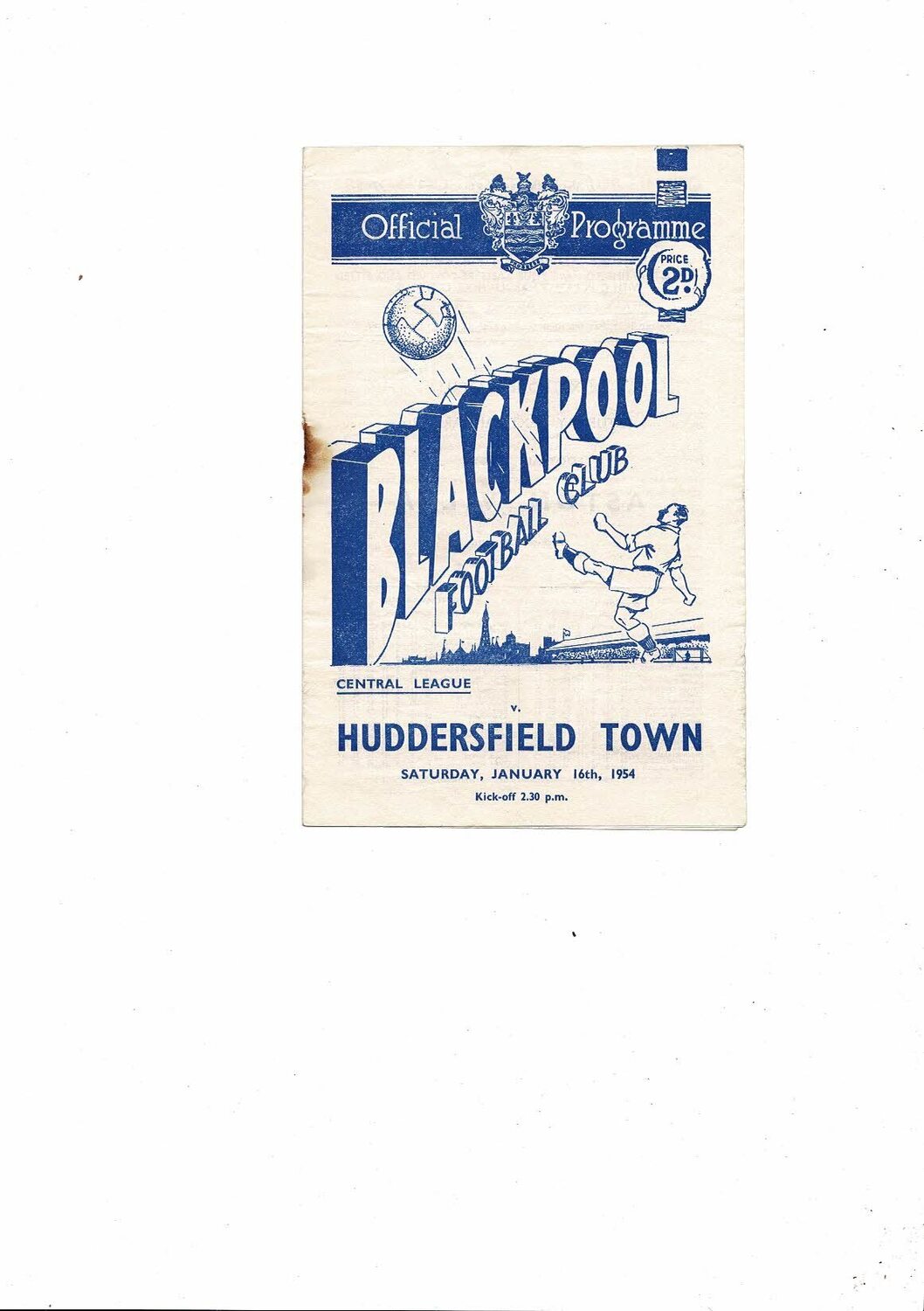 Blackpool v Huddersfield Central League Football Programme 1953/54