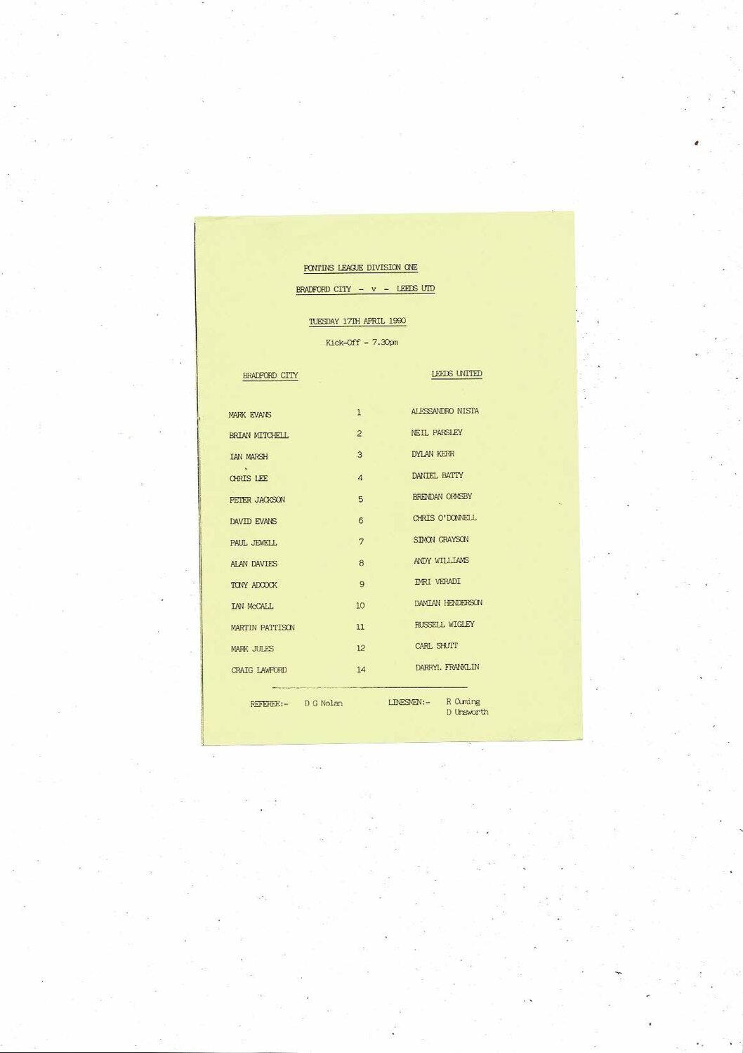 Bradford City v Leeds United Pontins League Football Programme 1989/90