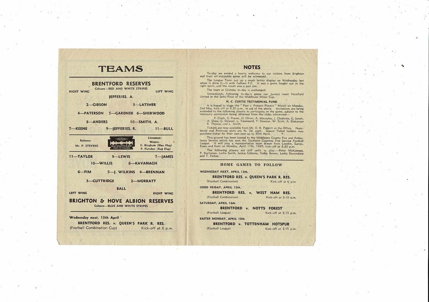 Brentford v Brighton Football Combination Cup Programme 1948/49