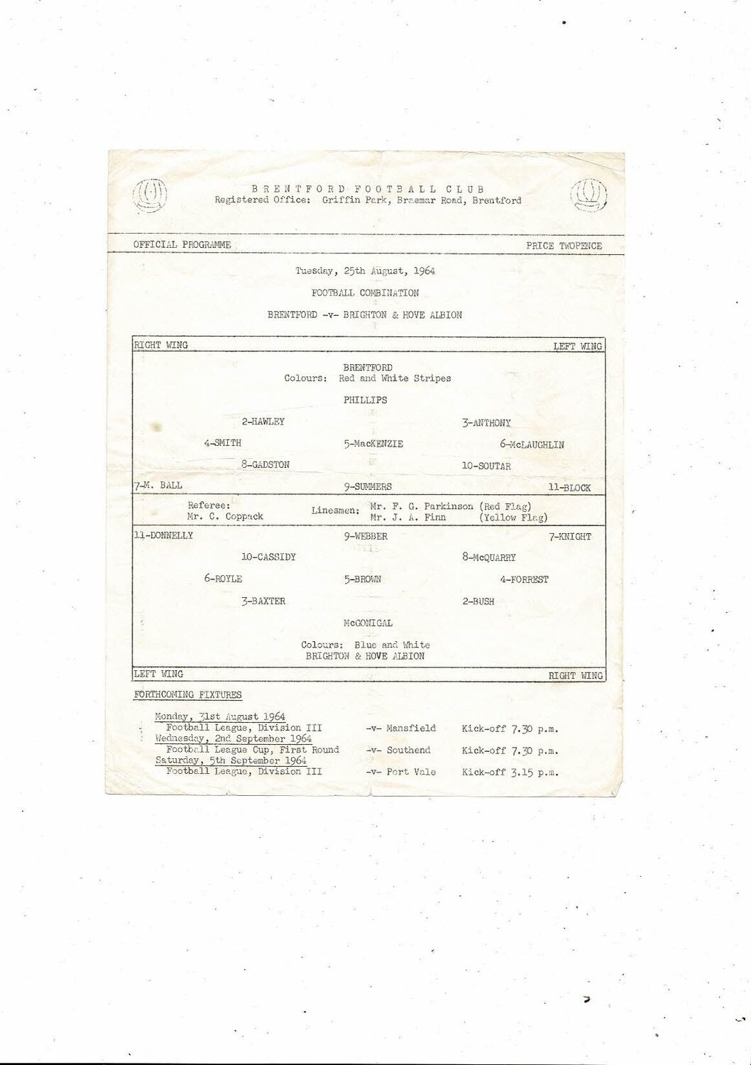 This Original single sheet Football Programme is creased & folded with some minor staining, several small tears. No handwriting. Please see scans.