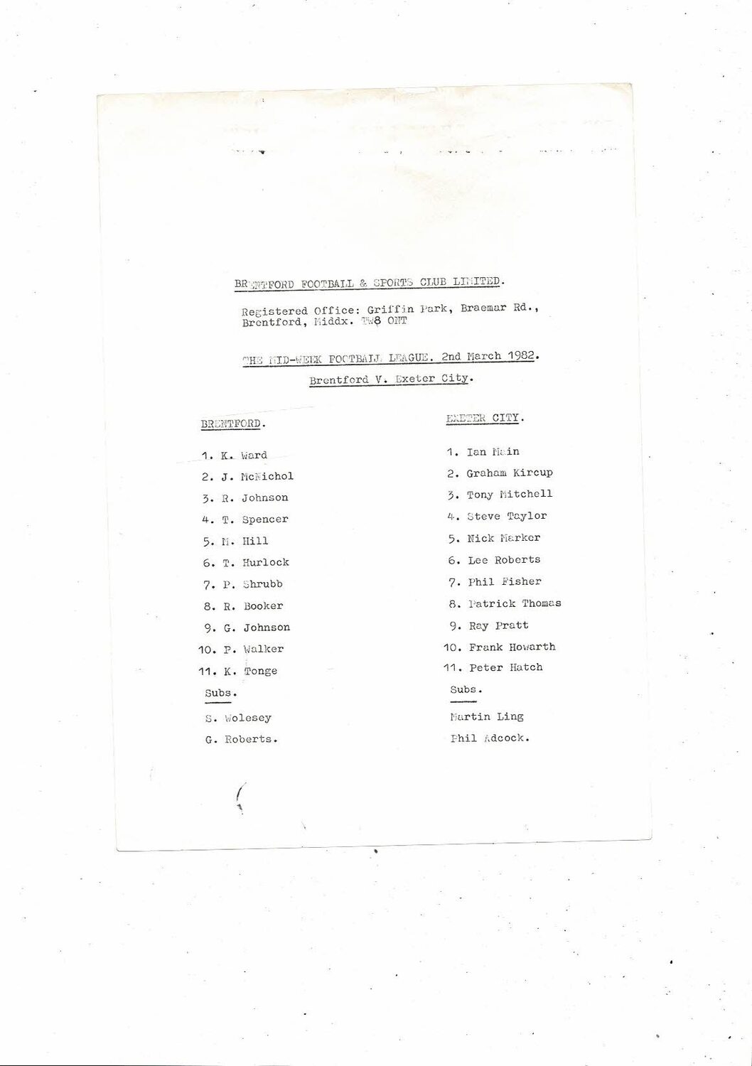 Brentford v Exeter City Mid Week League Football Programme 1981/82