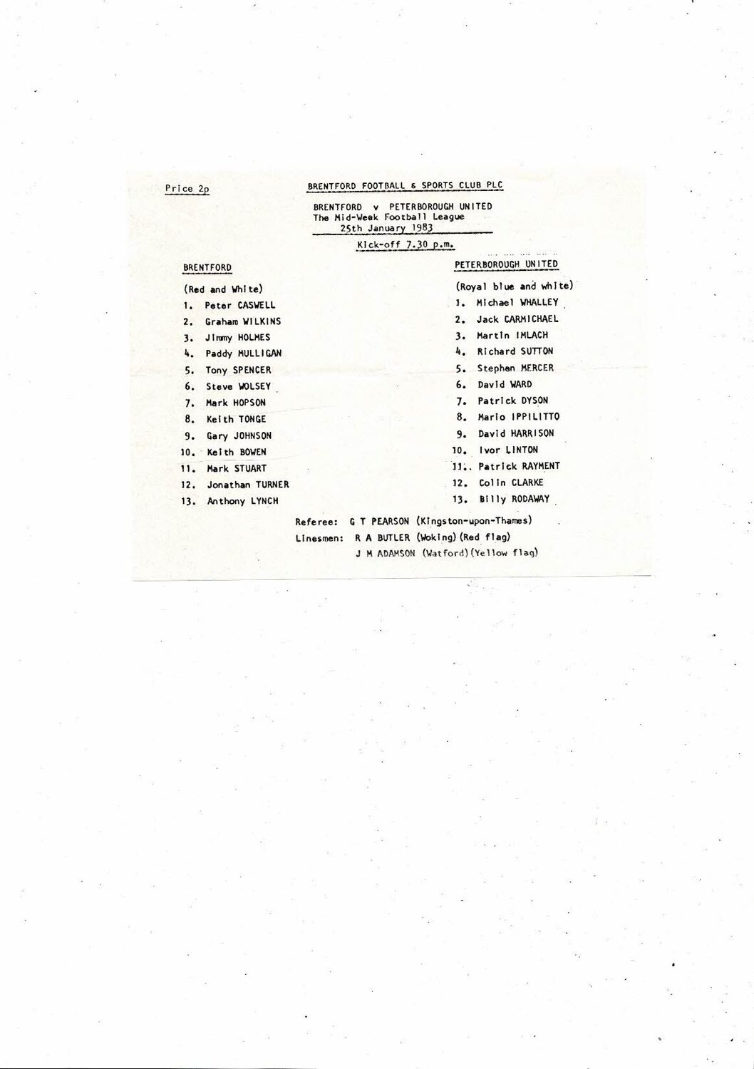 Brentford v Peterborough United Mid Week League Football Programme 1982/83