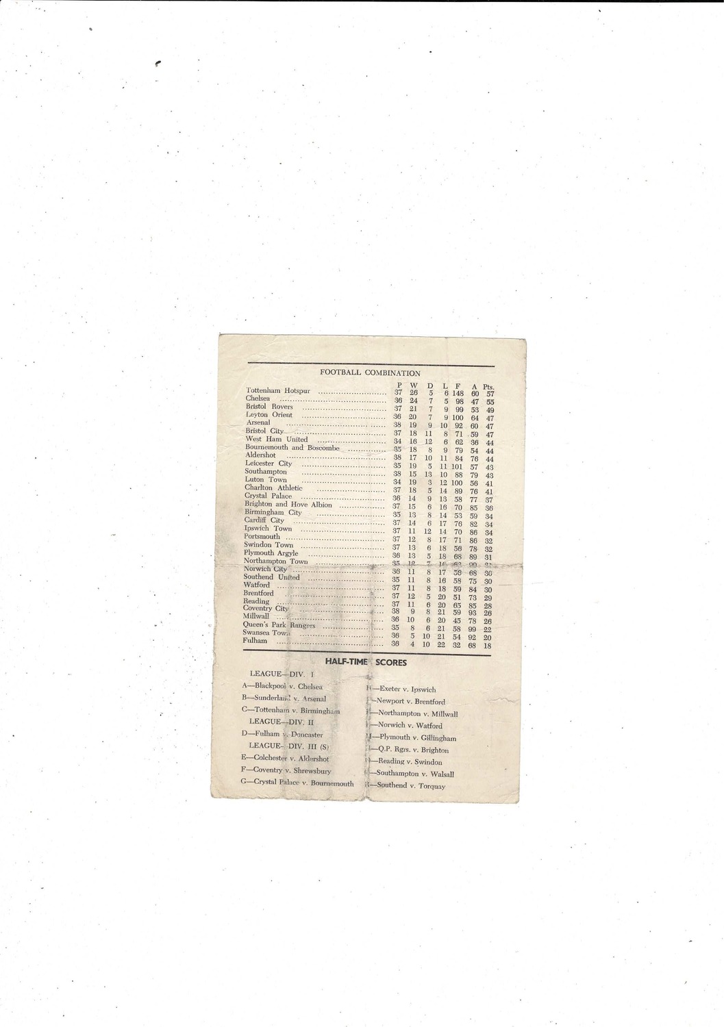 This original single sheet Football Programe is creased with some staining, small holes worn along one of the folds, several tiny nic's, a couple of tears & very tiny piece missing on edge. No handwriting. Please see scans.