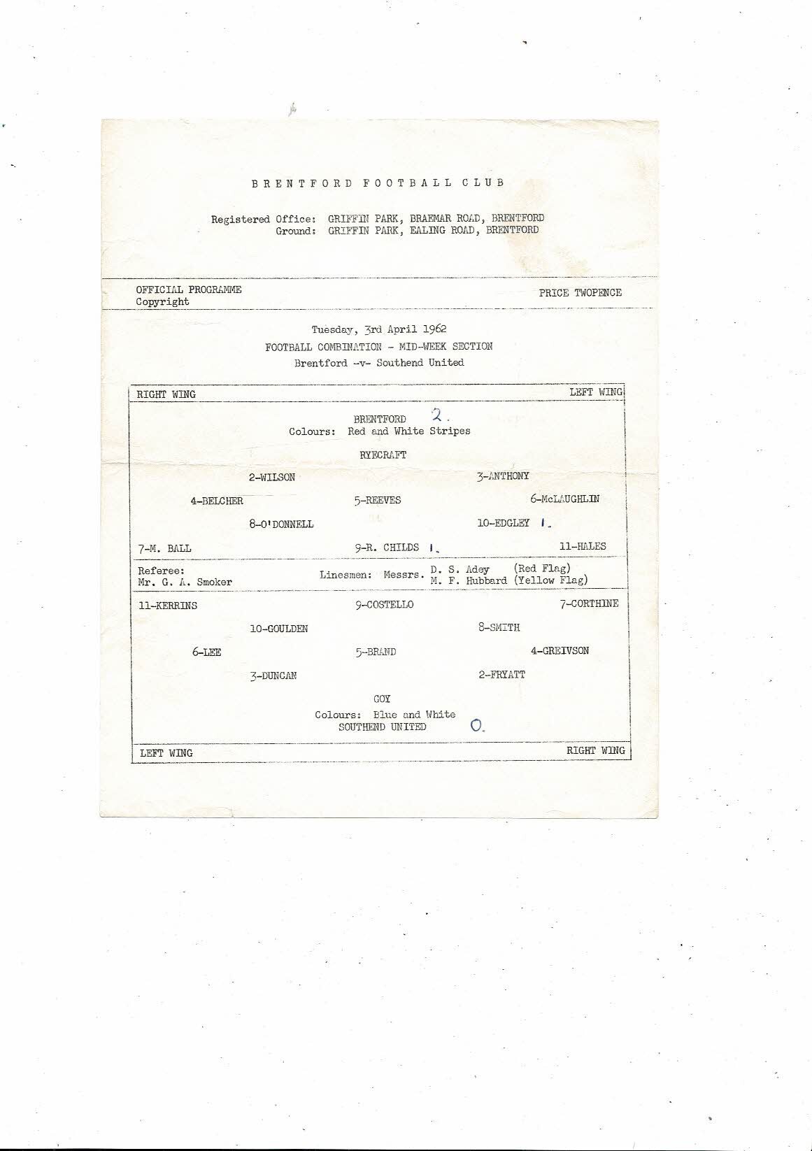This original Single Sheet Football Programme is creased & folded with some minor staining, a couple of small tears, score & scorers noted. Please see scans.