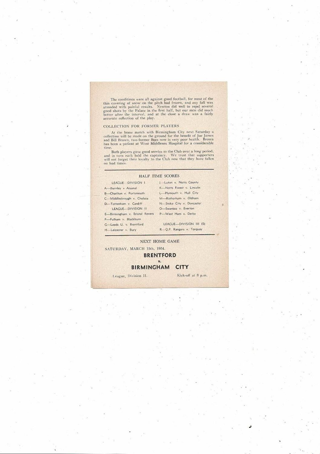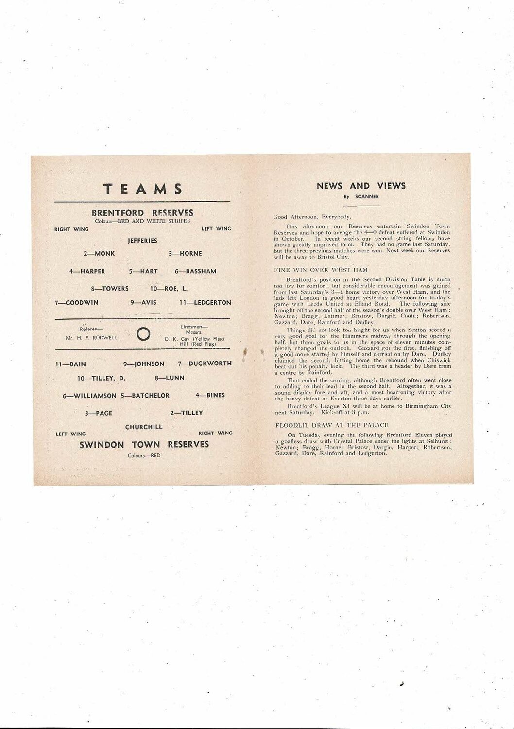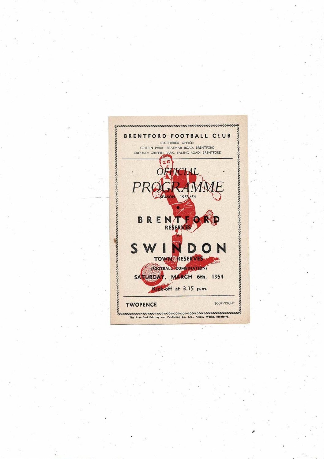 Brentford v Swindon Town Football Combination Programme 1953/54