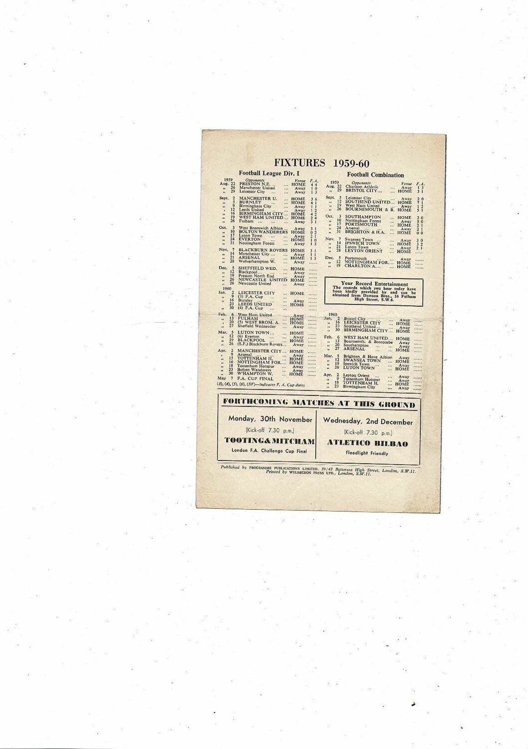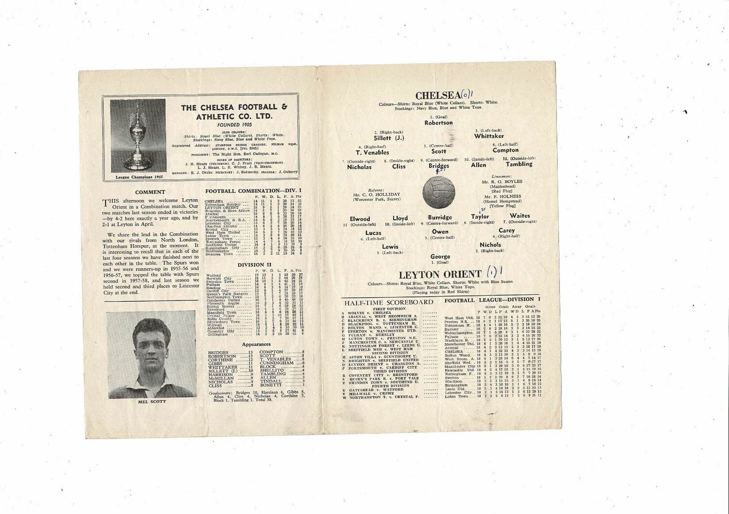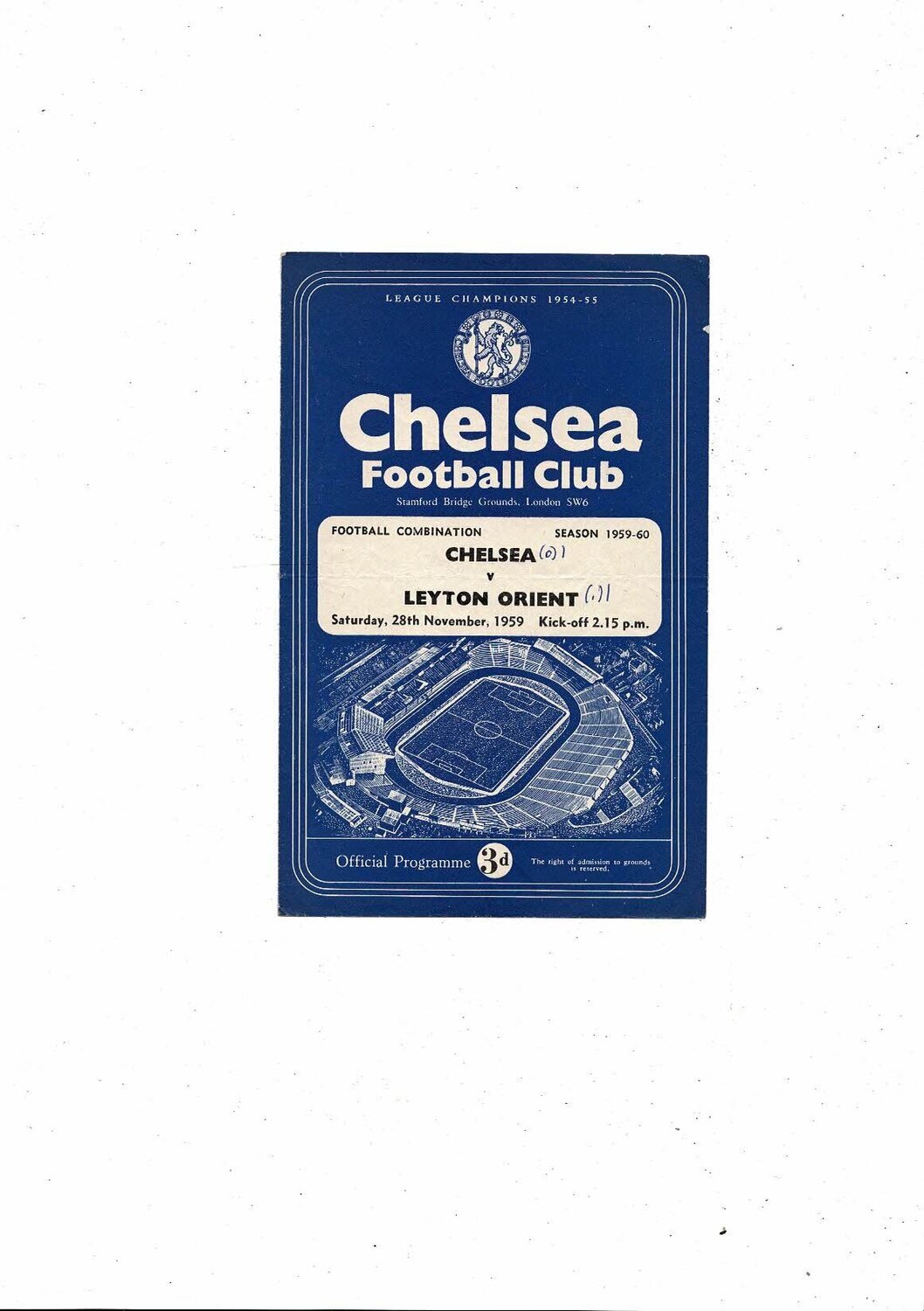 Chelsea v Leyton Orient Football Combination Programme 1959/60